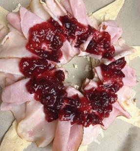 STEP 4: Spoon on a layer of whole cranberry sauce. Reserve remaining cranberry sauce for garnish in center of ring after baking and/or side dish.