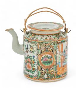 Rose Medalion (Chinese) Porcelain Tea Ppot Ca. 1900, H 5” L 6”
