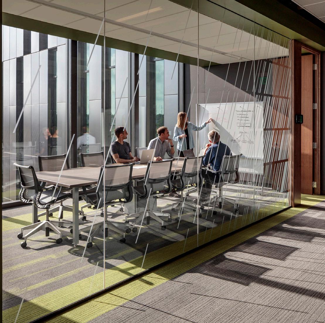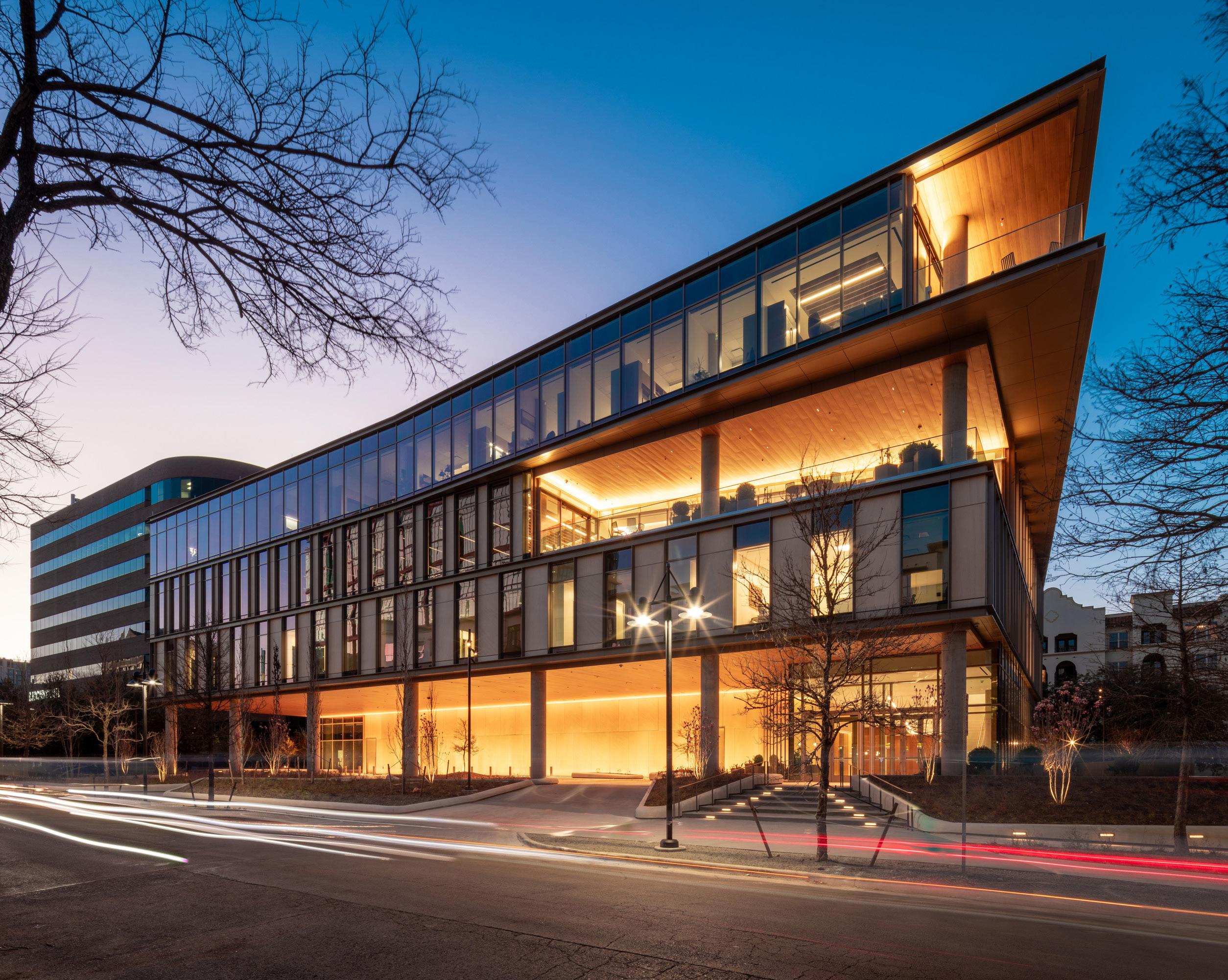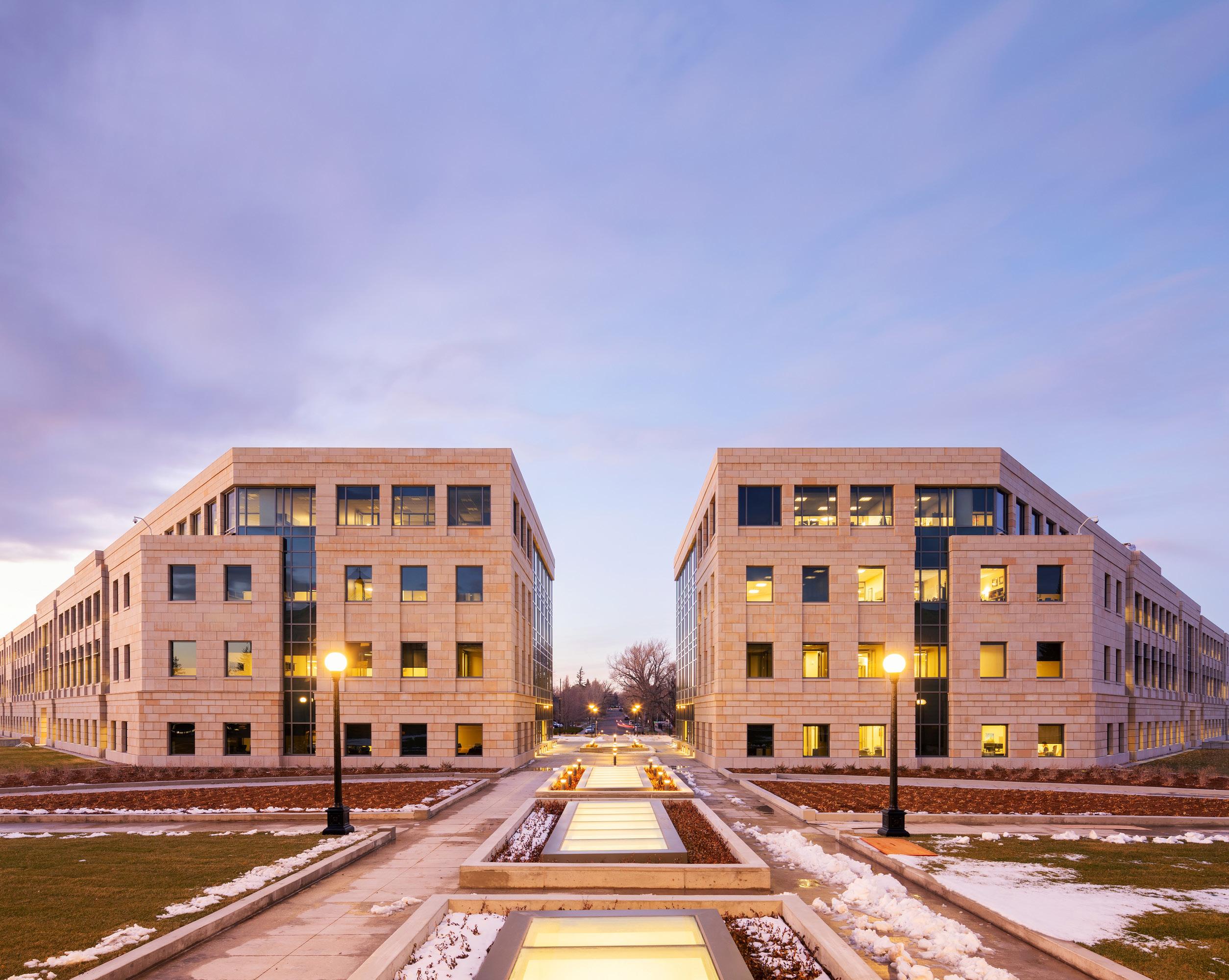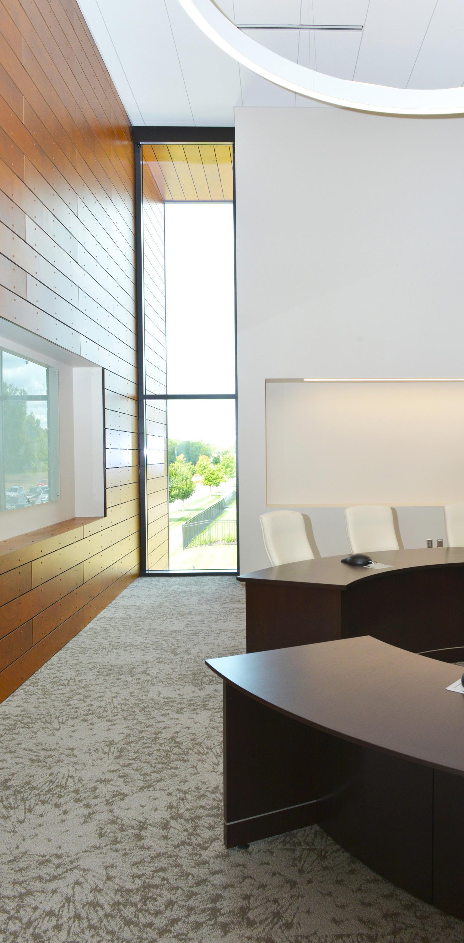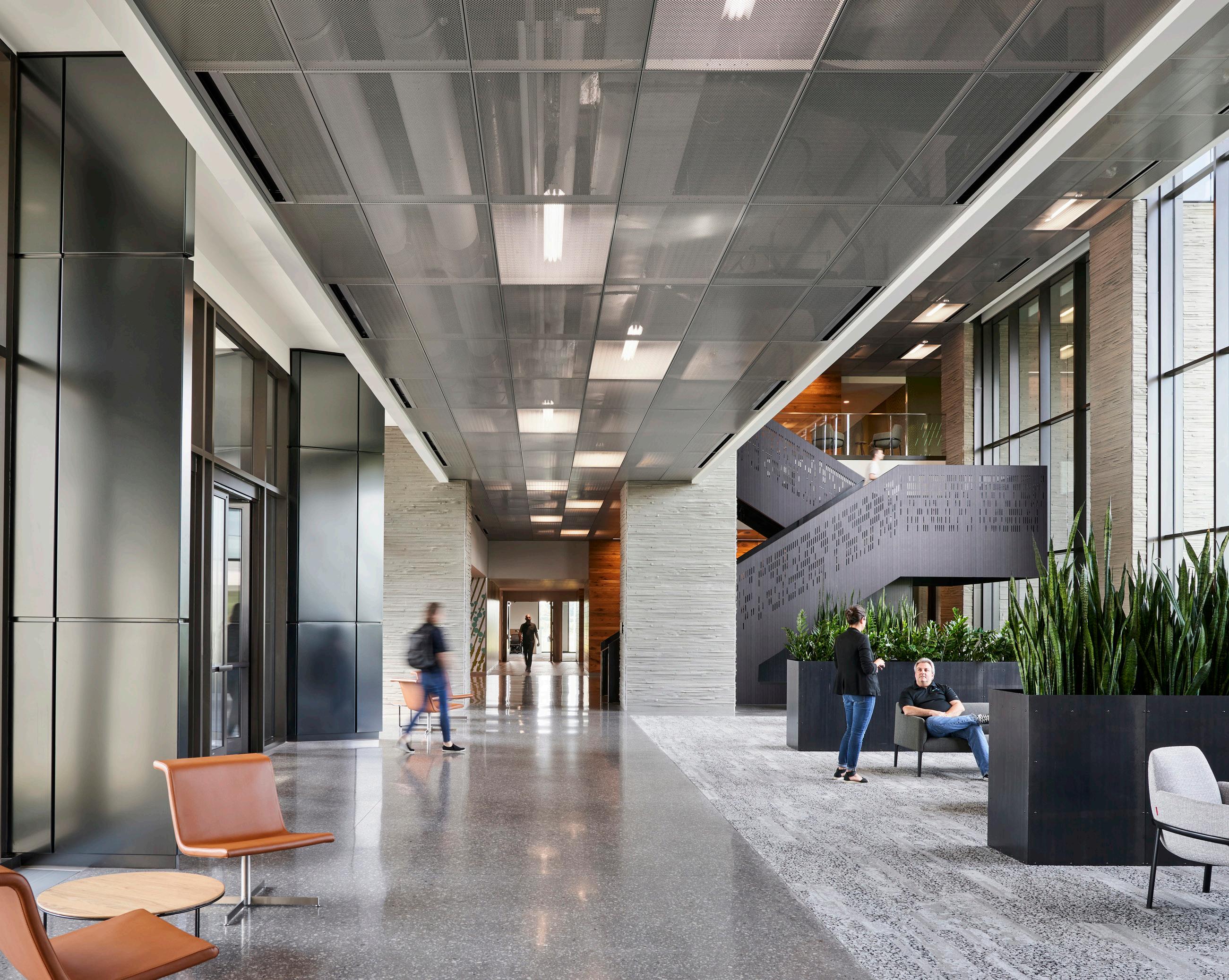 The first building is a 4-story, 125,000-square-foot office building and the second building is a 118,000-square-foot expansion with a connecting pavillion to the first building. Throughout the design process, the team regularly returned to the idea of “precision with a human touch” to create an environment that is both contemporary and comfortable for employees and clients.