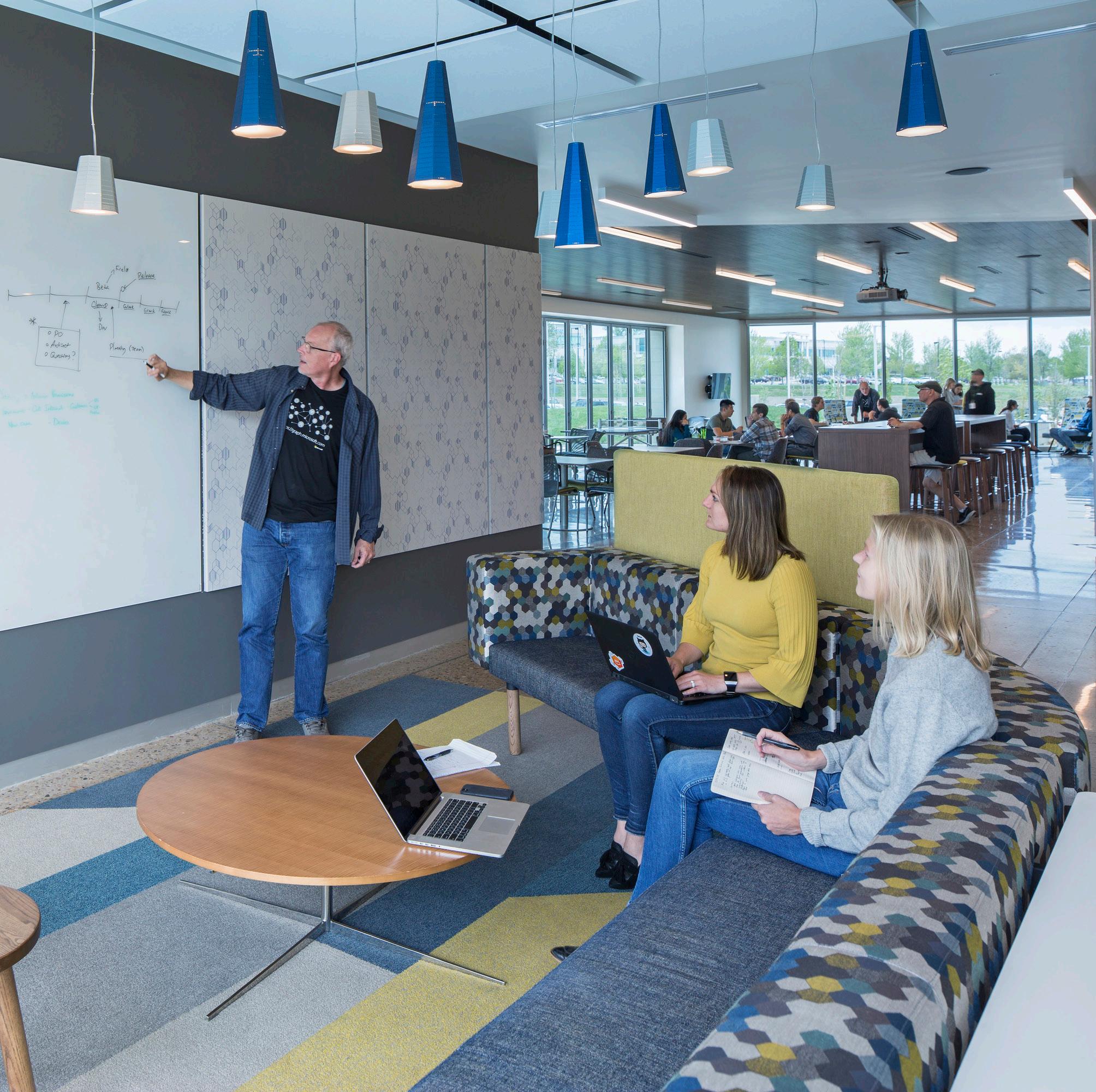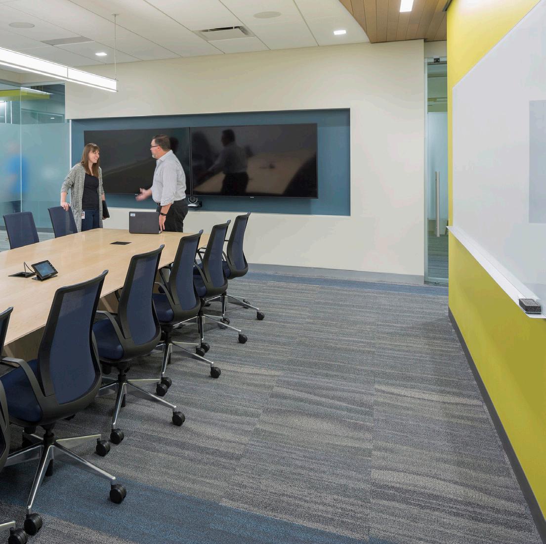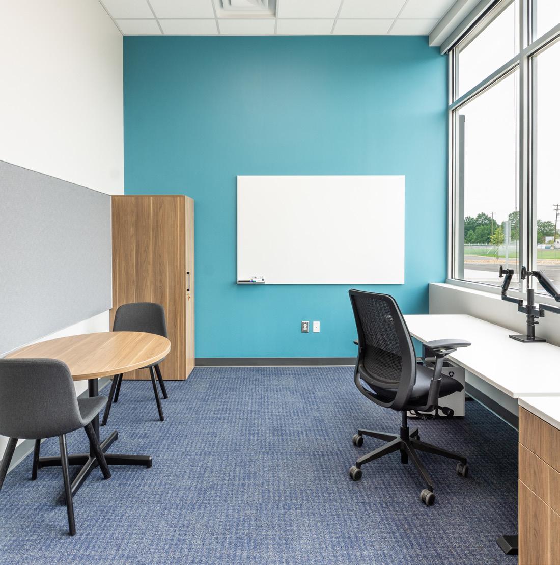 While many underlying engineering systems are shared between the two buildings – such as duct sizes and the innovative envelope – other systems were designed and built distinctly to accommodate different occupants. The second tower includes offices, open work areas, a training room with robust technology infrastructure, and a golf simulator.