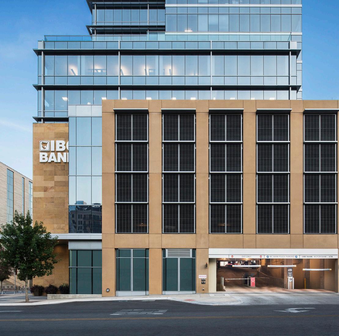 IBC Bank Plaza is a 397,935-square-foot, 7-story office building resting on top of six levels of above-ground parking and retail. The design of the building provides a dramatic effect with a prominent curve along 5th Street across from the Federal Courthouse, using unitized curtainwall. The garage is masked with a mixture of precast concrete, sandstone, various types of metal grilles, and backlit translucent panels. The interior spaces of the building continued this impressive design by incorporating additional stone elements, wood paneling and vaulted ceilings. This project was delivered 17 days earlier than the contractual completion, and seven days earlier than the contractual dry-in of the building which allowed the tenants to open their doors sooner than planned. IBC Bank Plaza meets Austin Energy Green Building requirements and LEED Silver certification.