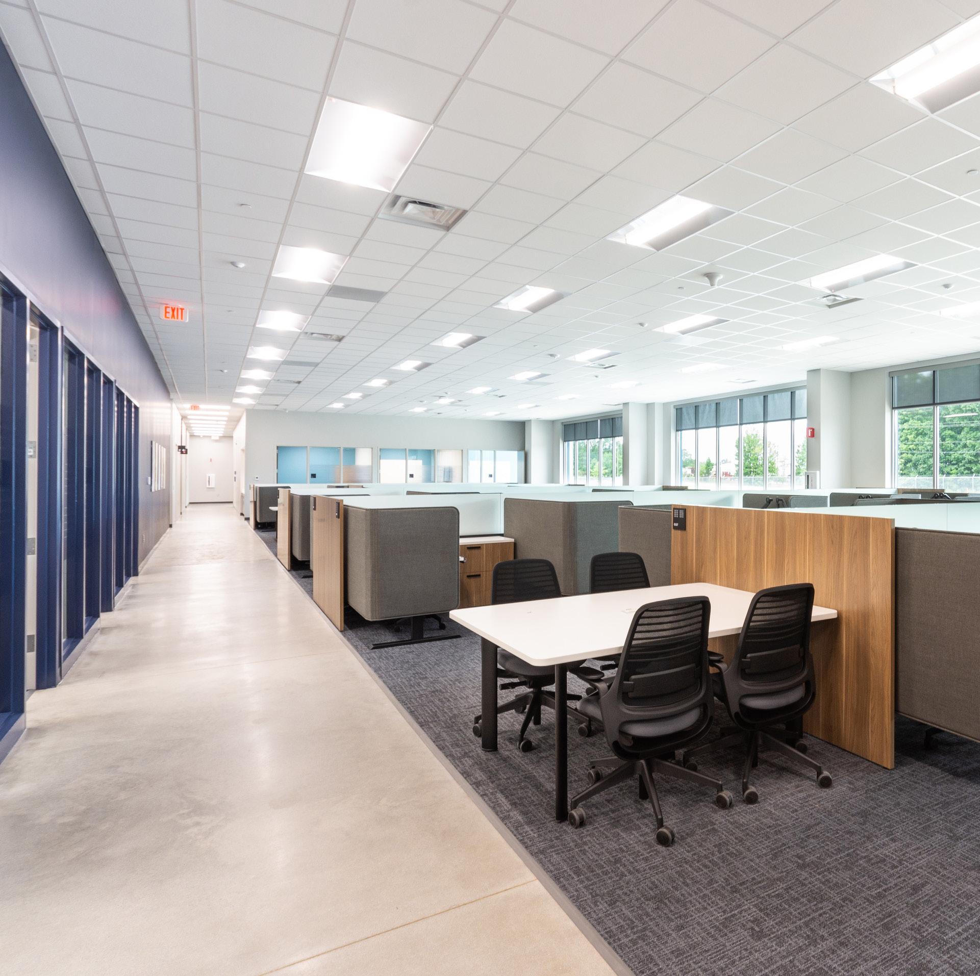 This project involved renovating a former big-box store into a 115,000-square-foot call center for a financial services company. The primary focus of the project was interior work, but demolition of an adjacent tenant space was also facilitated to create a new parking lot for the call center and maximize the space available for the employees.