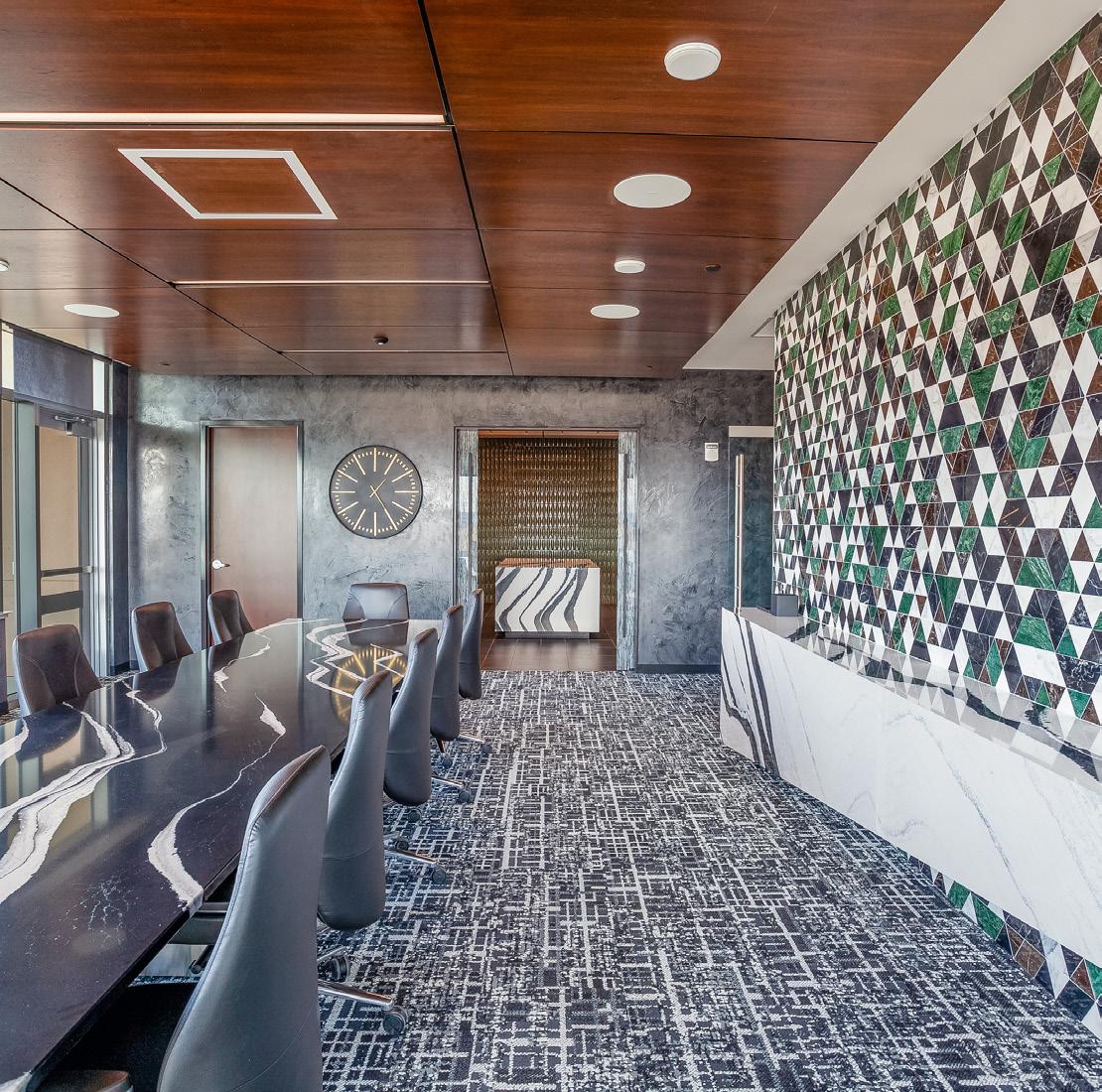 Located on the top four floors of a downtown Denver high-rise, Polsinelli’s office features a large entertaining space on the 22nd floor with a terrace spanning the entire south facade of the tower that capitalizes on panoramic views of the Rocky Mountains.