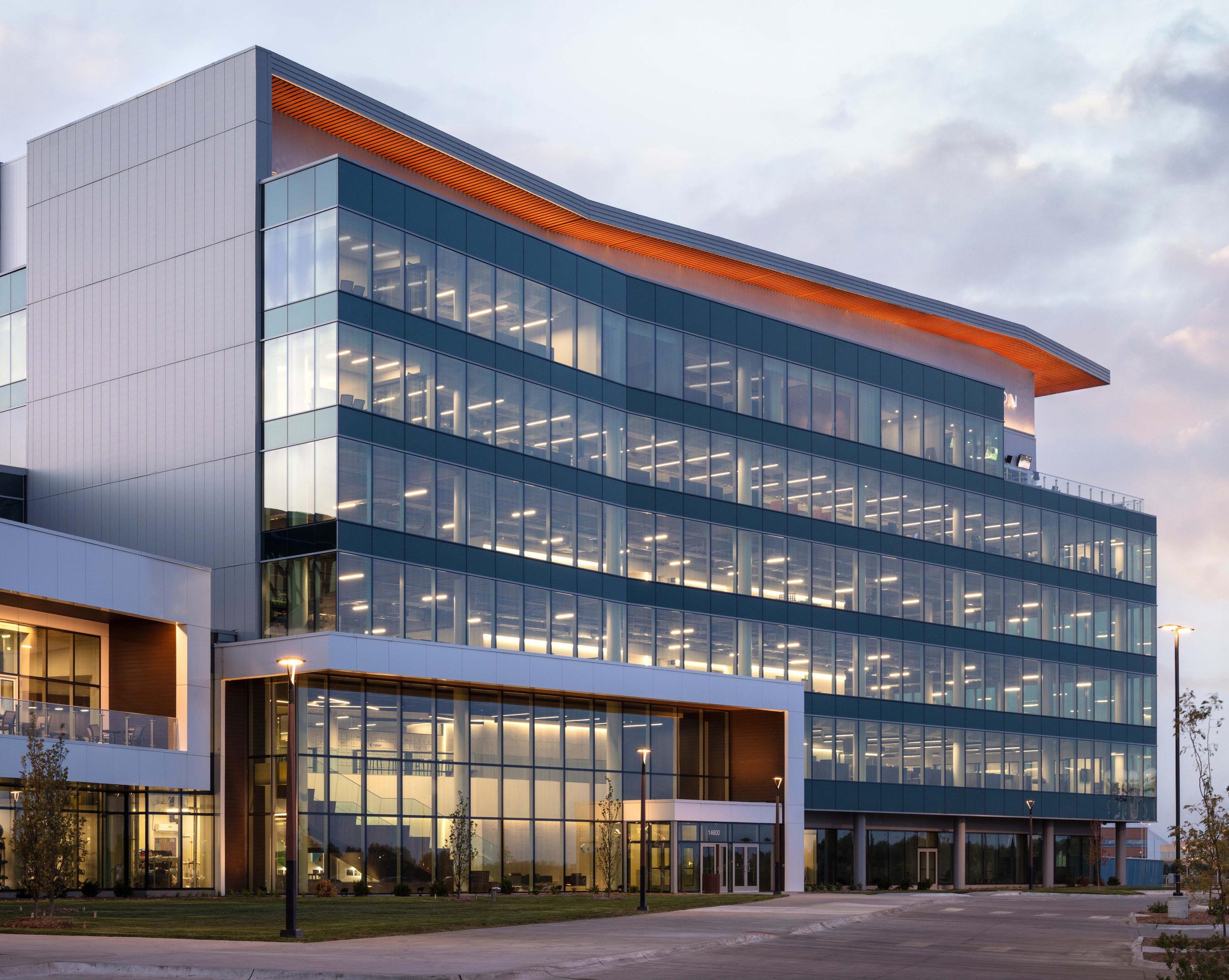 This new campus includes two 8-story office buildings totaling 600,000 square feet, and are built to include employee office space, training facilities, full service dining, a fitness center, and a clinic. The office buildings are connected to a 2,400-space, 7-level parking garage by an elevated, 300-foot-long pedestrian bridge.