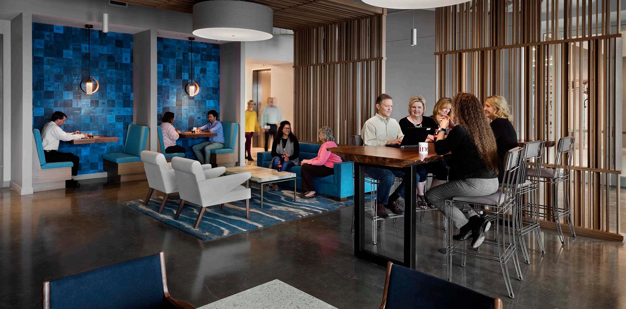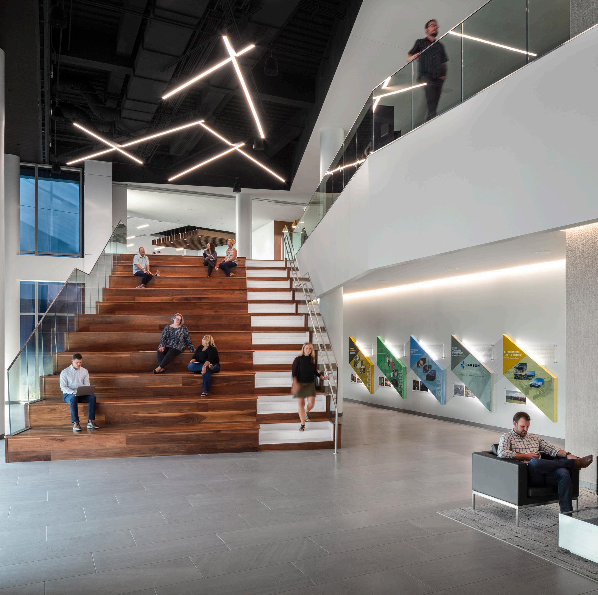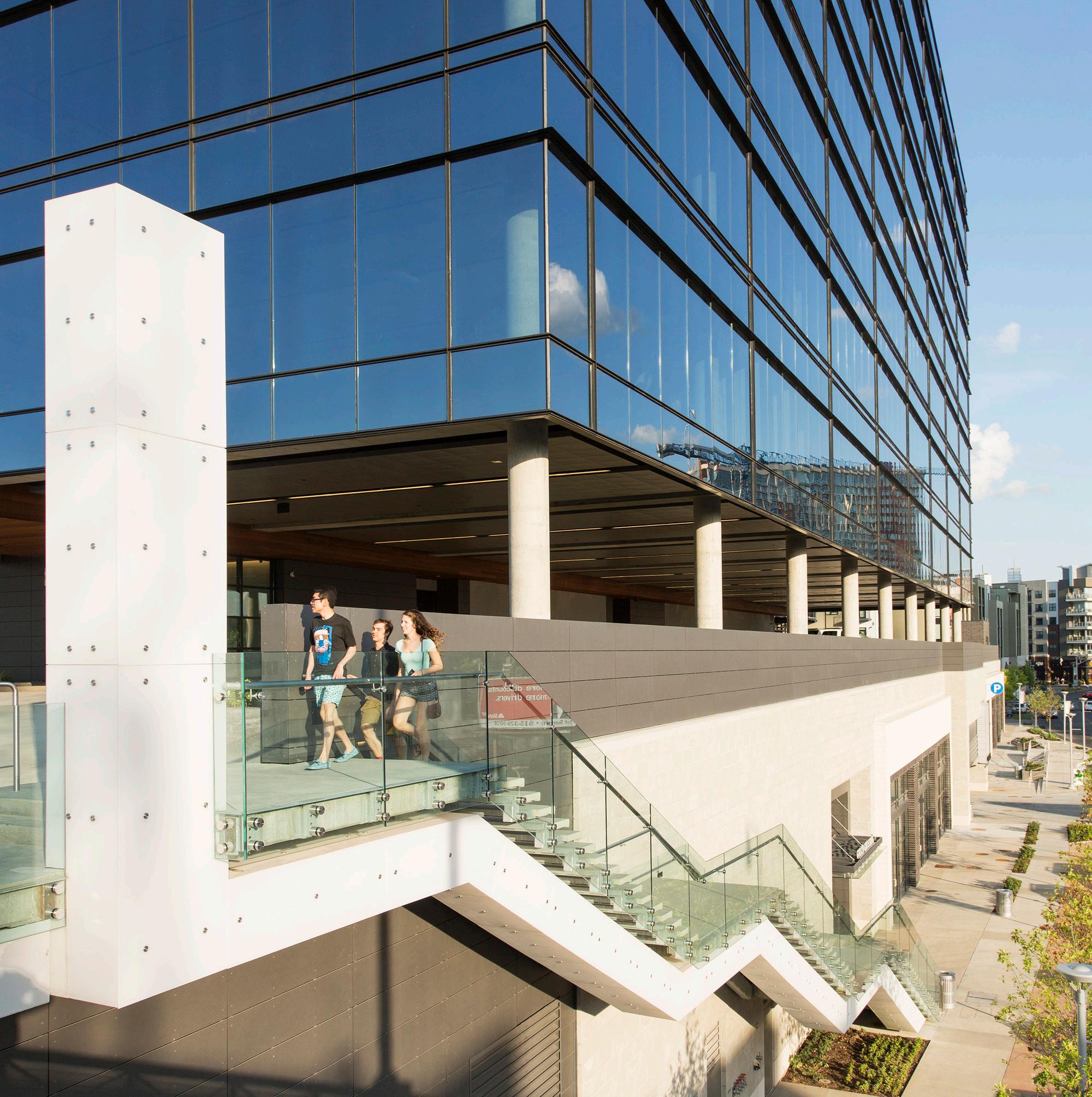 Tailored to fit the company’s positive “work-live-play” culture, Carson Group Headquarters is a 6-story office building joined to a 4-story tower by an amenity hub which houses a cafe, shared social spaces, and a state-of-the-art fitness center. Both buildings use an electrochromic envelop that reduces energy loads and emissions. Collaboration between JE Dunn and the design team yielded many structural solutions to achieve an ascension-inspired architectural vision, accomplished through a unique sit-stand staircase, outdoor decks, and a variety of individual and group workspaces.