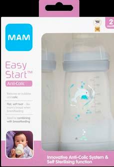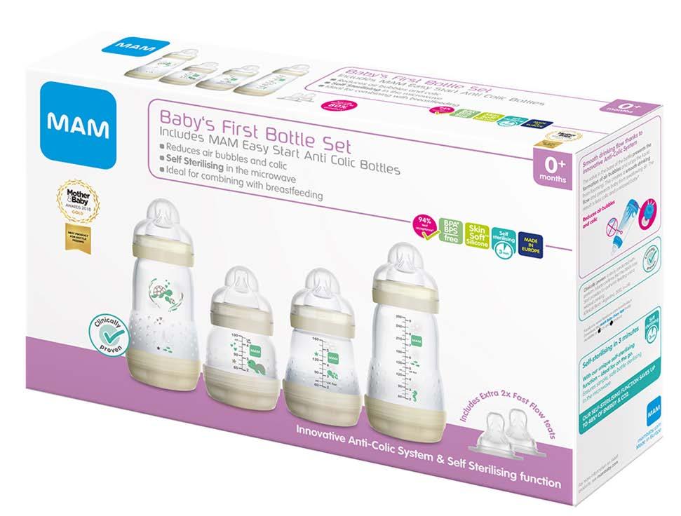 The MAM Easy Start Self-Sterilising Bottle Set offers an easy switch between breast and bottle.