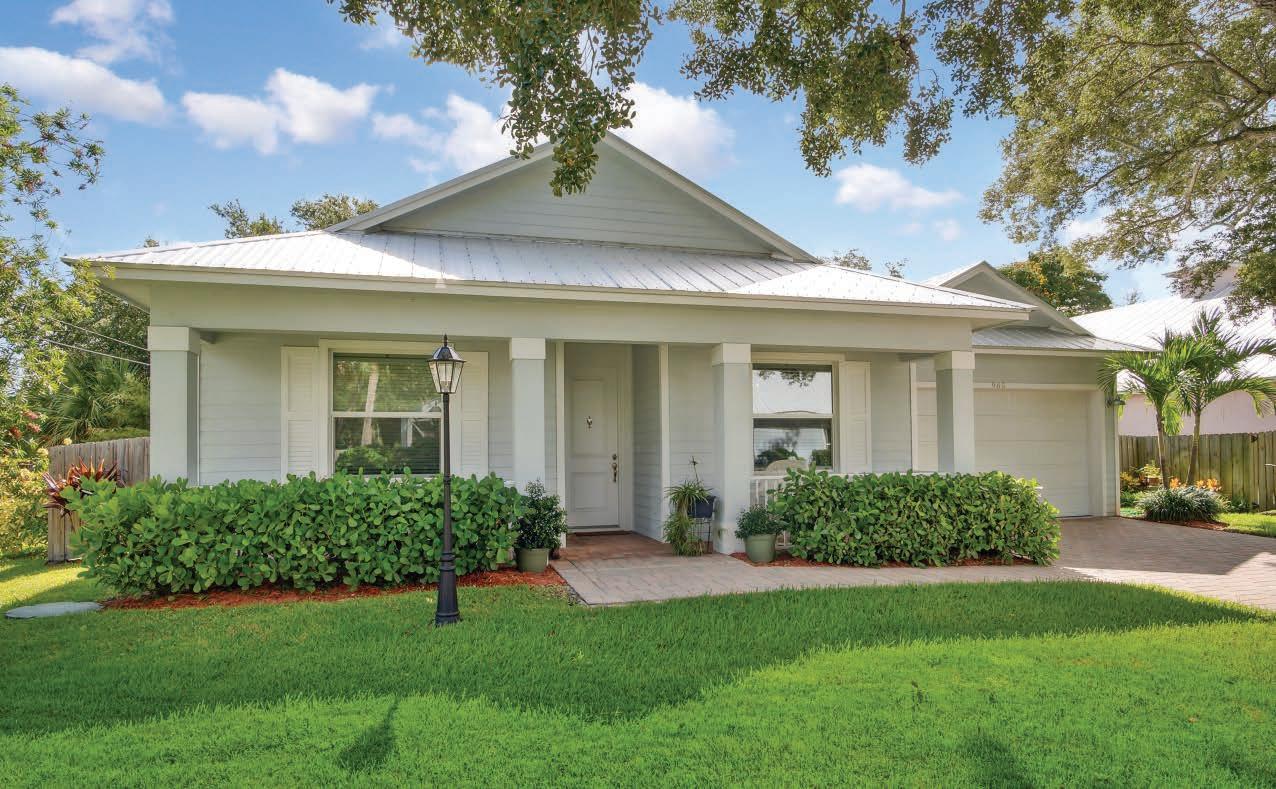 Amazing opportunity to live close to Downtown Stuart in an updated 2017 home, complemented with CBS structure, a metal roof, complete impact doors and windows. This Key West style home is located in an intimate community know as Flora Belle Estates, minutes from the water, and historical and waterfront homes. The home offers 4 bedrooms, 3 bathrooms, a 2-car garage, soaring ceilings, elegant faux wood porcelain tile flooring, custom molding and an open floorplan. The oversized living room flows out to the covered private patio to the back and opens to the kitchen/dining in the front. The generous primary bedroom suite offers large, bright windows, an oversized walk-in closet and an elegant bathroom with separate shower and soaking tub. The very private backyard is completely fenced, perfect for pets, children and just some relaxation while shaded by Live Oaks. This turnkey home encourages a carefree lifestyle for all to enjoy!