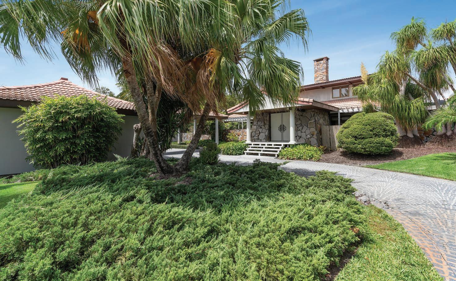Beachside living in the guard-gated community of The Sanctuary. The front entryway of this custom-built home sets the mood, and is a visual collaboration of art and nature. Designed to bring the outdoors inside, this 4 bedroom, 3 bathroom home features a multitude of French doors, windows and an enchanting sunroom overlooking the stunning greenery. Many upgrades include high-end Miele appliances and a Sub-Zero refrigerator, cherrywood cabinets and insulated interior walls. But the best living is outdoors, whether dining under the pergola, swimming in the solar-heated pool or swinging in the hammock.