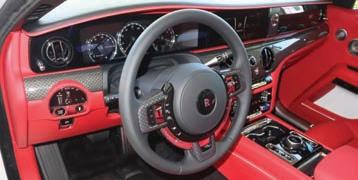 Lyrical Copper over Black leather. 14,634 miles from new. Inspired by Music Package ($49,450) includes Fawn Brown accents, Commission Collection clock, open pore tudor oak canadel paneling with RollsRoyce bespoke audio system.