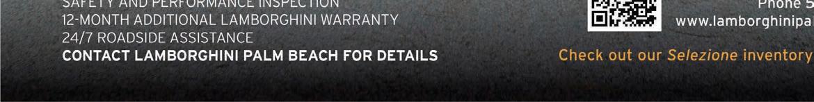 ACCUTRON 5 BELL FLIGHT IFC CHOPARD 2 FRANCK MULLER USA 9 QANNATI 7 FERRARI QUEBEC 21 HOLAND AUTOMOTIVE GROUP 18 LAMBORGHINI PALM BEACH 20 MCLAREN TAMPA BAY 10 RUSNAK BENTLEY PASADENA 27 STANFORD CHEVROLET CADILLAC - BUICK - GMC 28 AMERICA’S MOST WANTED 4X4 55 AUTOBUF 64 AUTOSTACKER 50 BRABUS USA 49 COMBAT MOTORS 47 CUNNINGHAM AUTOMOTIVE 57 DEALERS CHOICE AUTO TRANSPORT 62 EXECUTIVE COACH BUILDERS 60 FESTIVAL DEL TORO 39 FLATROCK MOTORCLUB 32 GRECH MOTORS 46 GTECHNIQ LTD 63 LOKI 38 LUXURY LEASE PARTNERS, LLC 41 MECUM AUCTIONS 61 MONT-TREMBLANT RACE TRACK 58 PEBBLE BEACH CONCOURS D’ELEGANCE 65 SINTOR TRUCKS 51 SPECIALTY VEHICLE ENGINEERING 42 TINT WORLD 48 ULTIMATE TOYS, INC. 36 WOODSIDE CREDIT 43 XPEL, INC 40