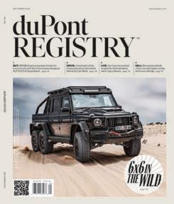 The duPont REGISTRY™ is copyright 2023 by duPont Publishing, Inc. ISSN 0890-362X. All rights reserved. duPont REGISTRY, A Buyers Gallery of Fine Automobiles®, A Buyers Gallery of Fine Boats®, the Steering Wheel design, dupontregistry.com™, and various titles and headings herein, are trademarks of duPont Publishing, Inc. and may not be reproduced without written consent. Printed in the U.S.A. Published 12 times per year. Single copies available at your newsstand or call our publishing office for shipping information. Canadian GST not included in cover price. Annual subscription available. Call (888) 465-2957 or write to duPont Registry™, P.O. BOX 433036, Palm Coast, FL 32143-3036.