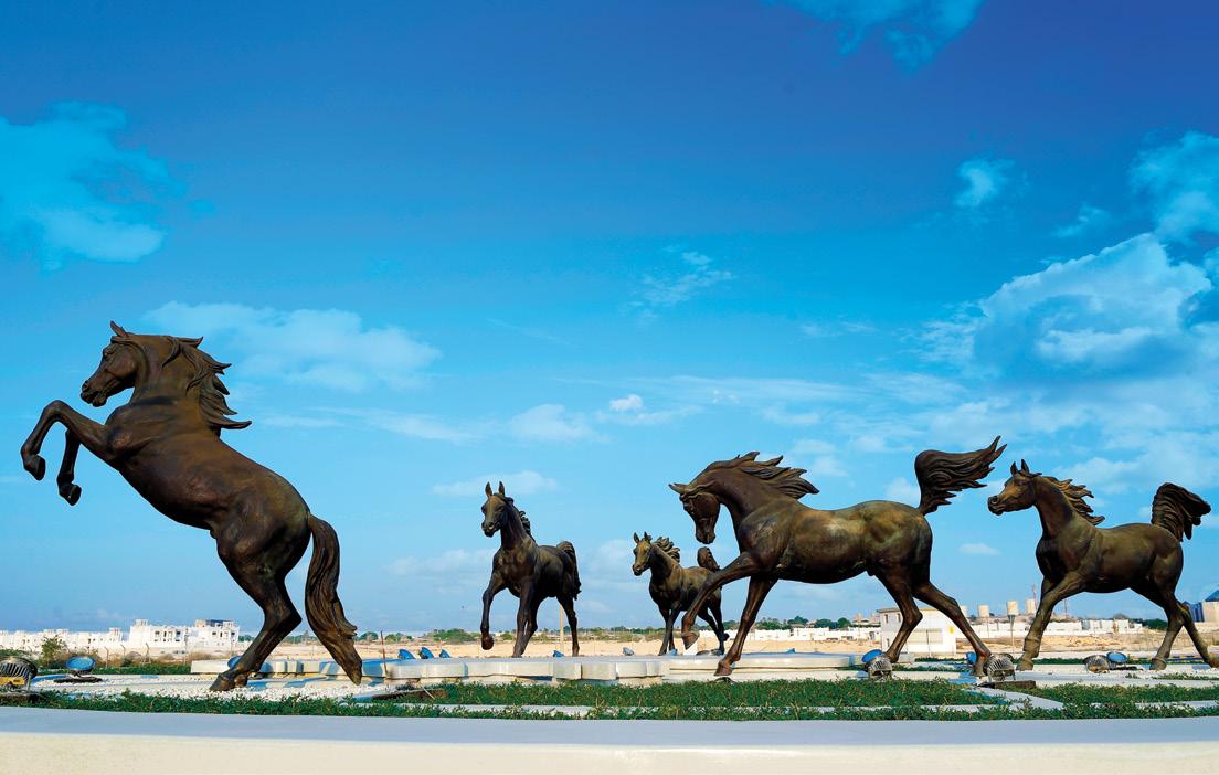 We feature artist Mutasim AlKubaisy’s sculptures, titled ‘Bint Al Bahrain’, which celebrate the iconic Arabian horse and the senior leadership’s achievements in the equestrian feld.