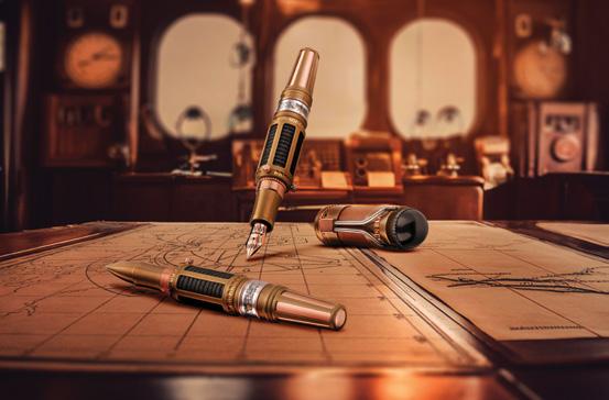 The newest addition to Montegrappa’s Avanguardia collector series places emphasis on originality and periodauthenticity. Principal materials employed are rosewood and brass, with each hardware element milled in the manifattura’s state-of-the-art machining centre. Rosegold electroplating simulates copper componentry, while steel wire and braided cable also feature in the design.