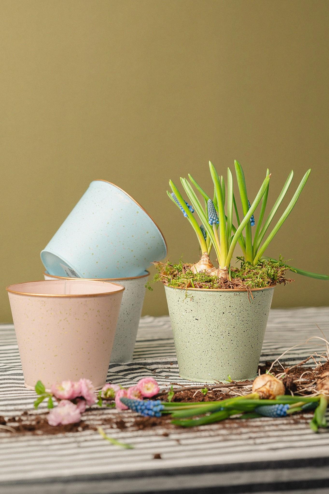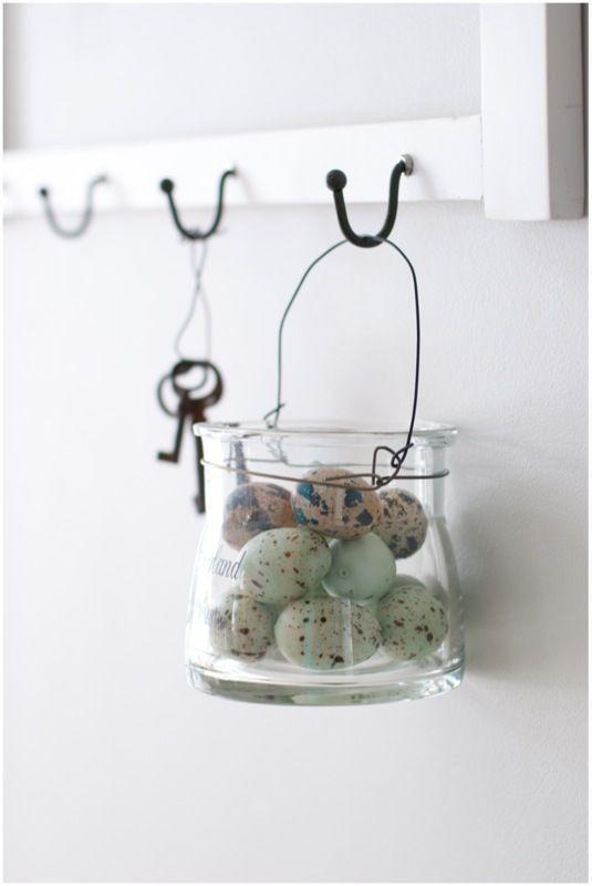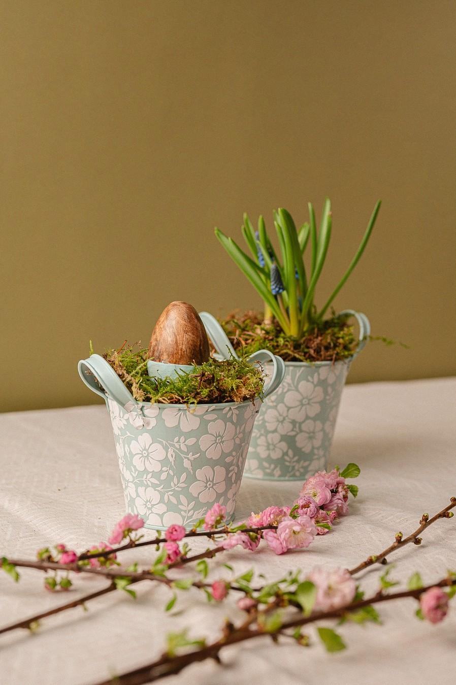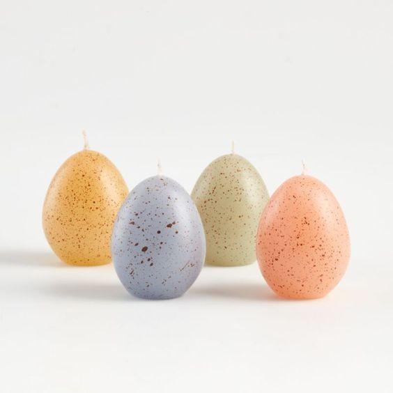 SPECKLED FINISHES add a fun and playful element to these Easter pieces.
