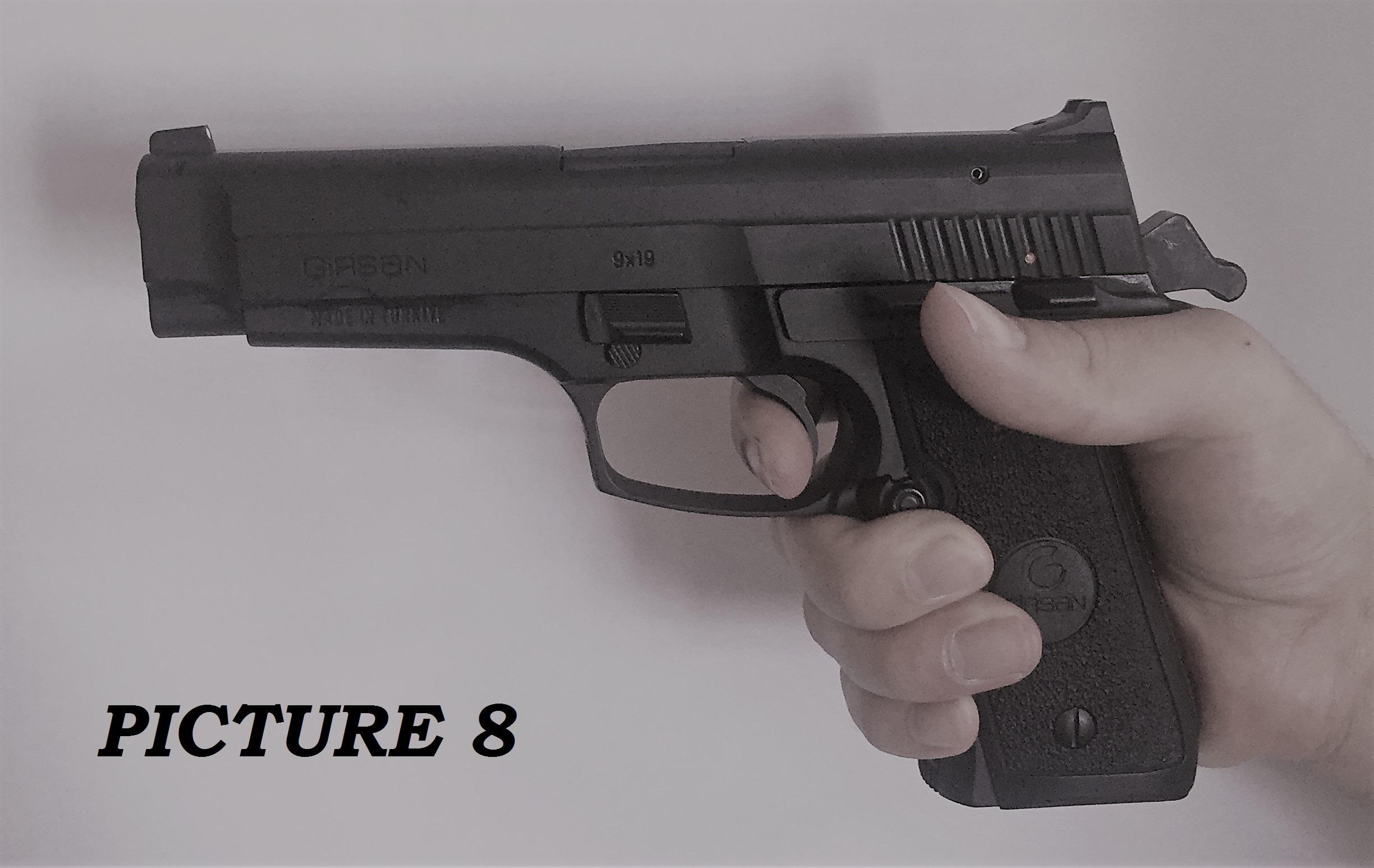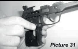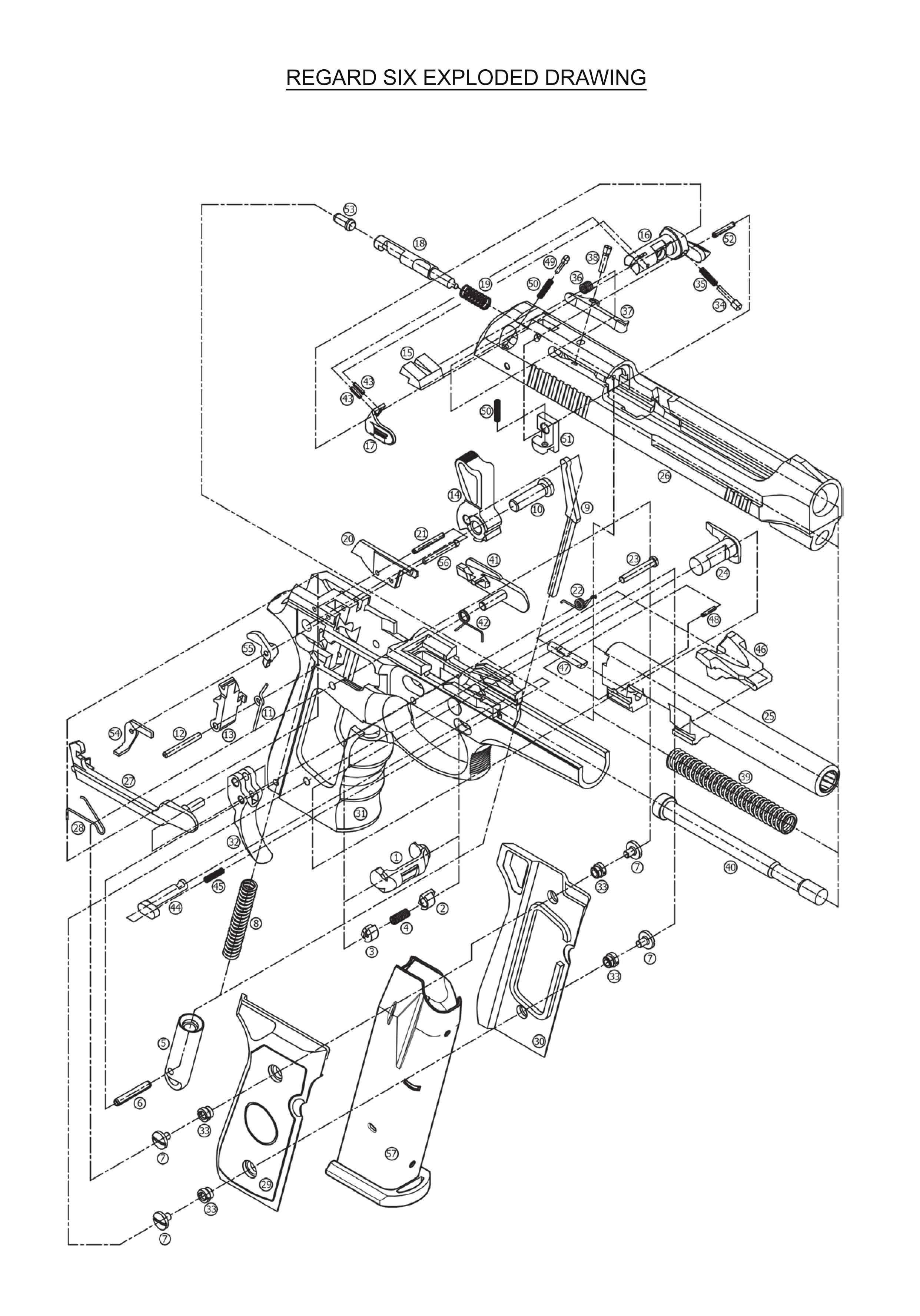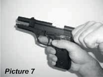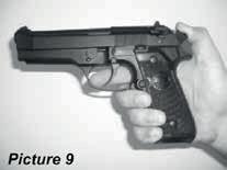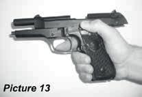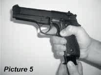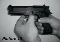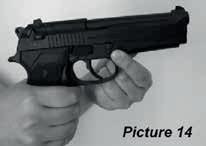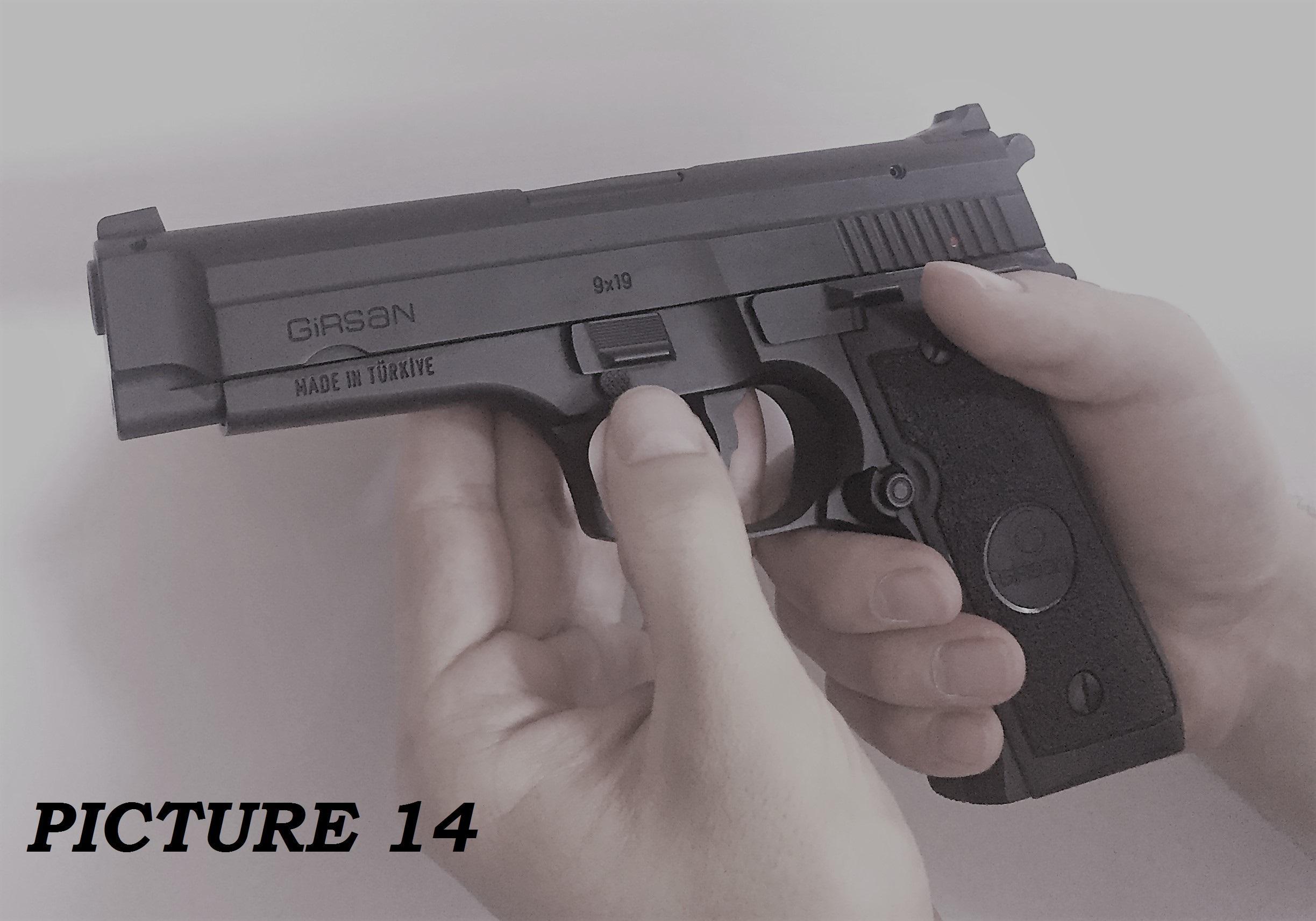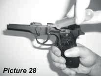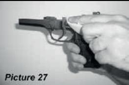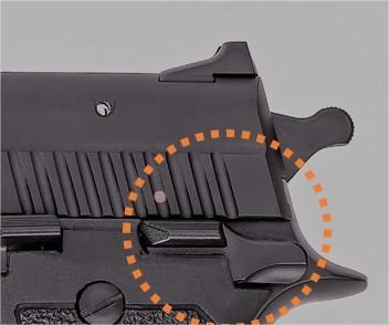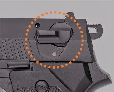 for different hand types. Safety lever functions as Decocker. Decocker lever allows the hammer to be dropped on a live cartridge without risk of discharging it by covering the firing pin.