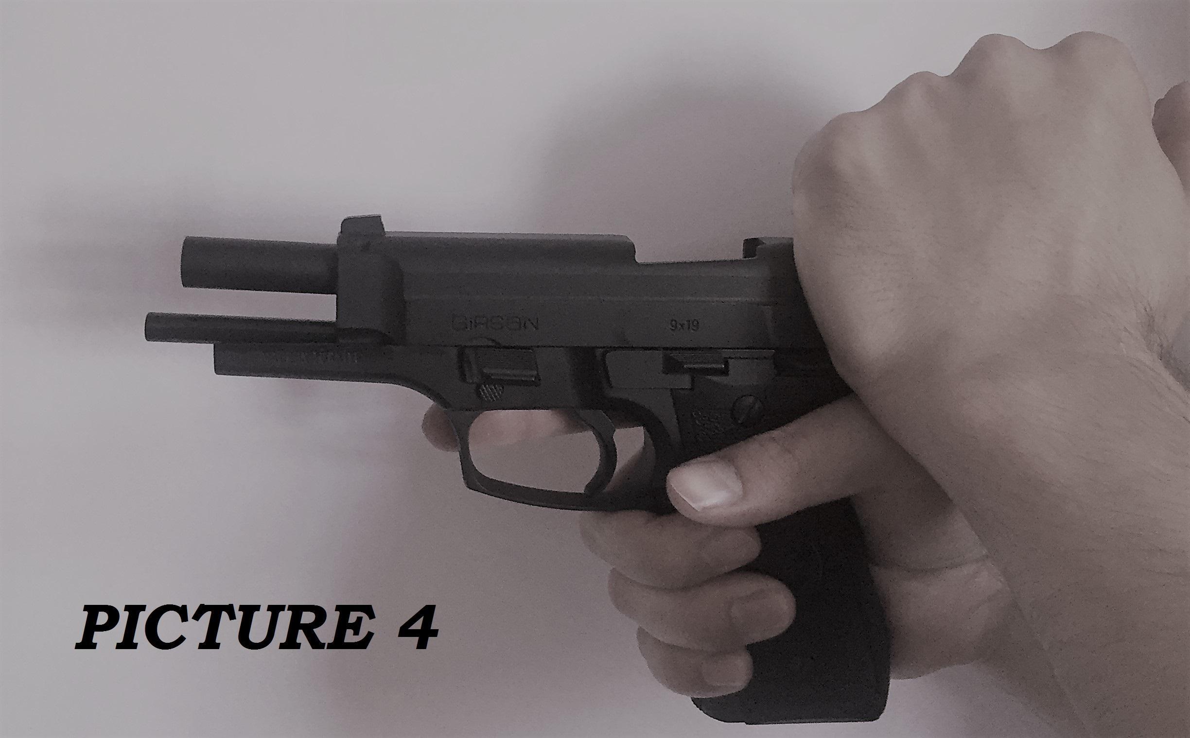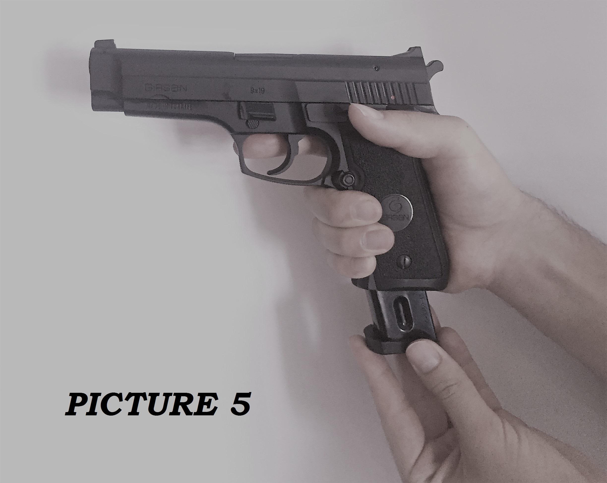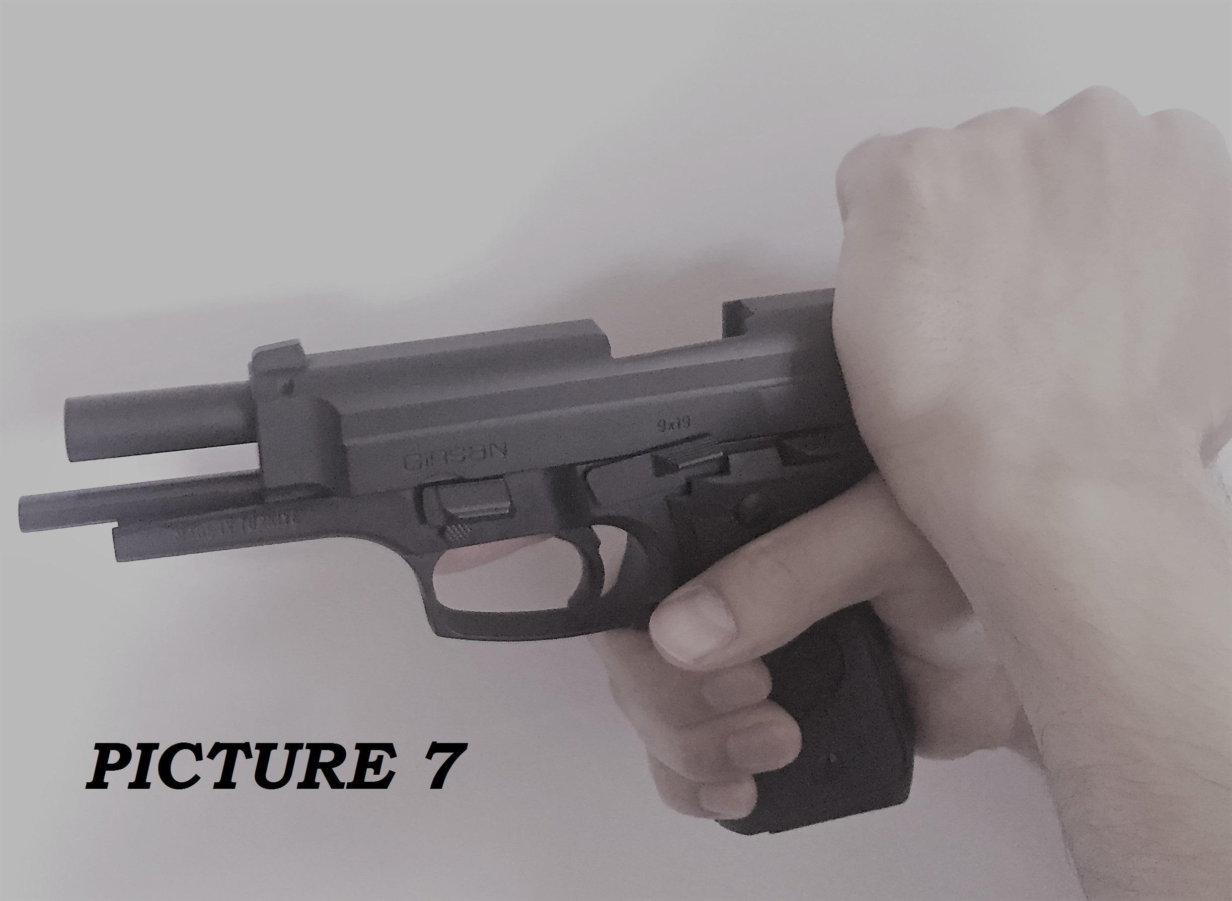 for different hand types. Safety lever functions as Decocker. Decocker lever allows the hammer to be dropped on a live cartridge without risk of discharging it by covering the firing pin.