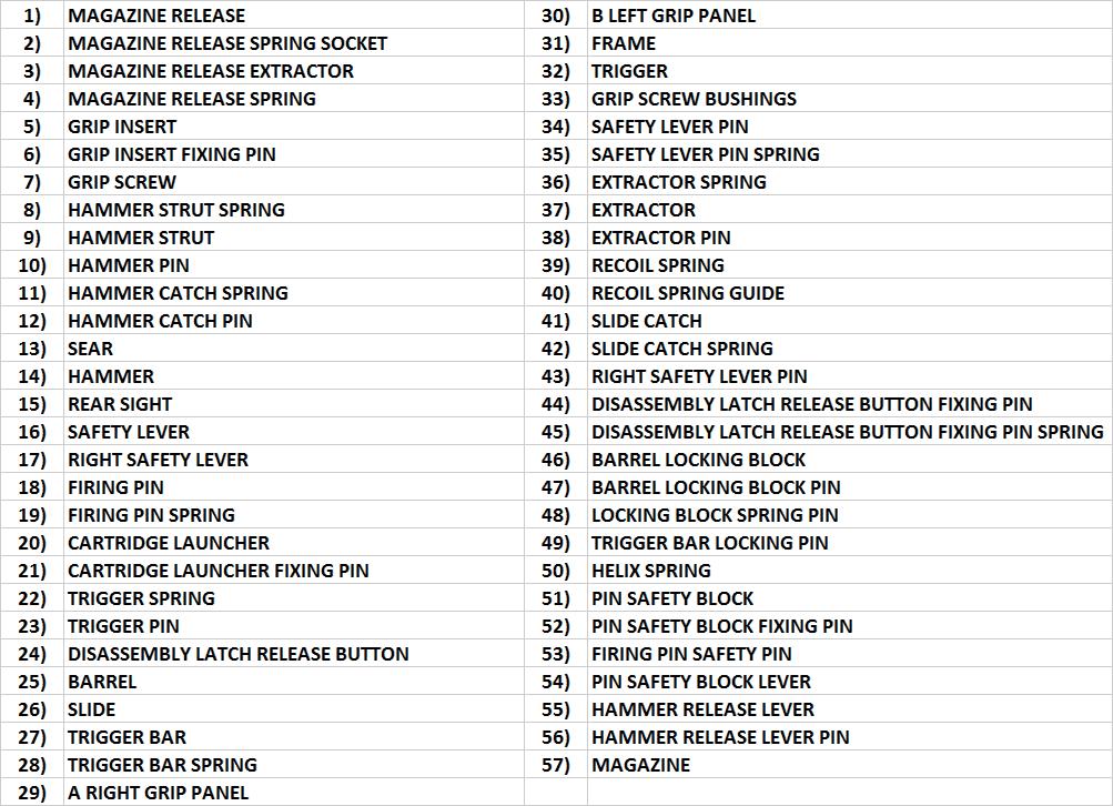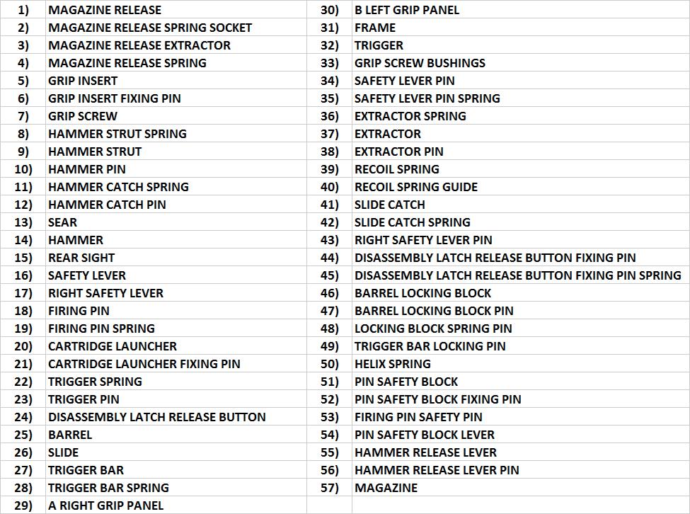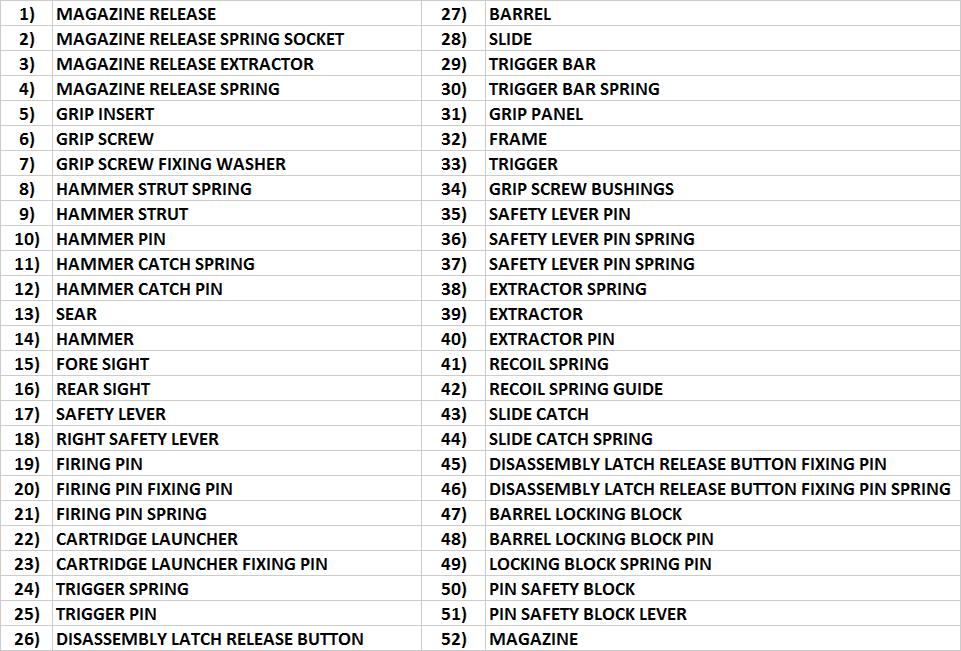 MC 17 - MC 21 - COMPACT MC - TUĞRA MC 18 - MC 39 2. Barrel 3 S Assembly 4 Frame (Grip and trigger group) frame