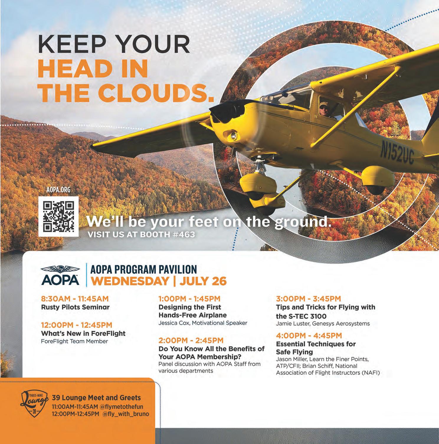 FIND THESE SONGS on your favorite streaming service, and let them help build a personal soundtrack for your trip to the World’s Greatest Aviation Celebration. Those Magnificent Men in Their Flying Machines by Ron Goodwin Top Gun Anthem by Harold Faltermeyer We Were Born to Fly by the Scorpions Come Josephine in my Flying Machine by Ada Jones and Billy Murray Aviation by Lana Del Rey 7/25 Visit the EAA AeroEducate™ Center in Aviation Gateway Park to learn how to engage students in grades K-12 with the world of aviation. Visit our website AeroEducate.org AeroEducate Our partners: