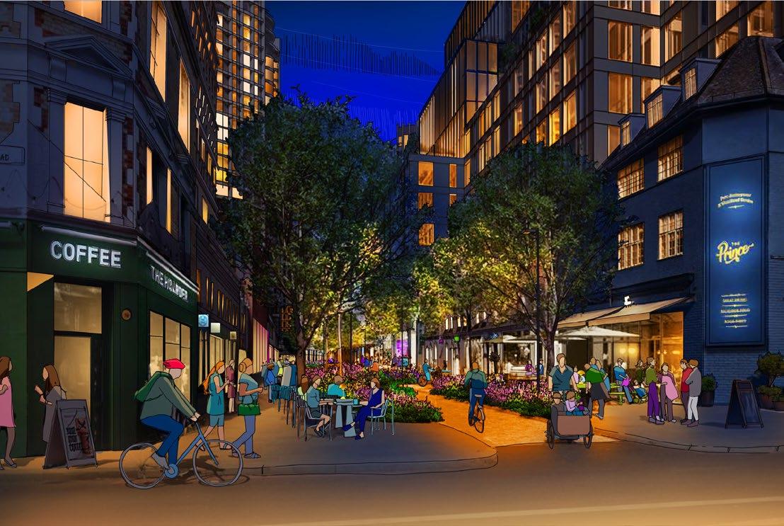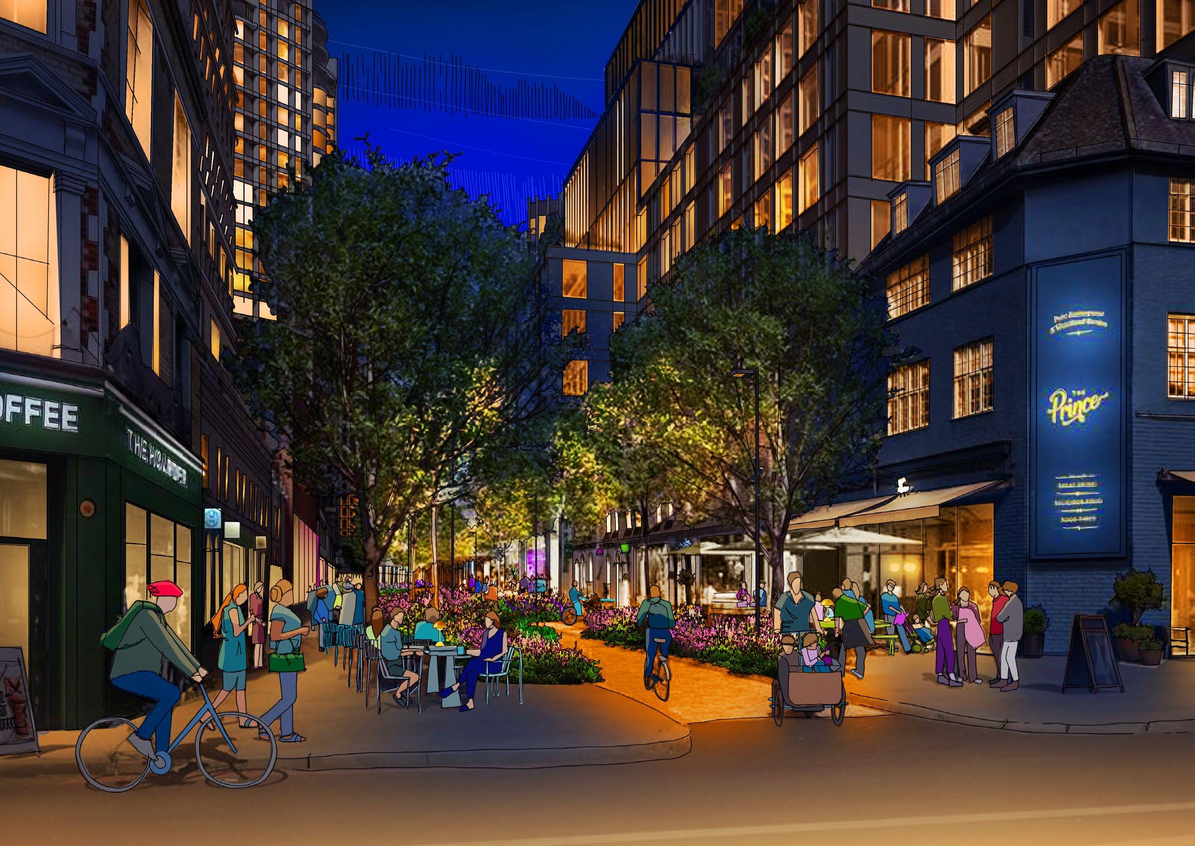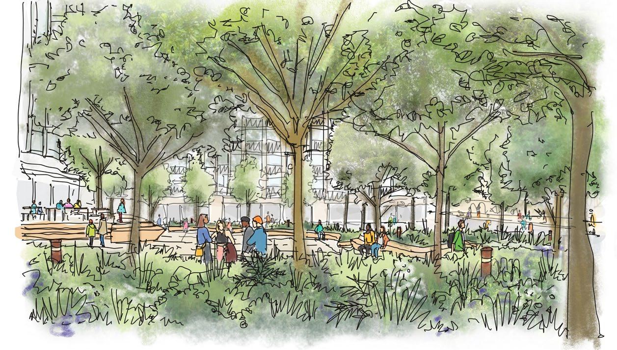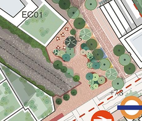 • Additional illustrative detail informed discussions on how the space is framed with active frontages and landscape.
