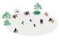 3. Selected trees and planters along central route lit from human-scale lighting columns fixed within adjacent planters.