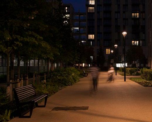 Colour temperatures of the public realm lighting vary across the Site according to the intended use of the spaces and their occupants, and also in relation to their adjacent spaces, easing transition between areas as people move across the Site.