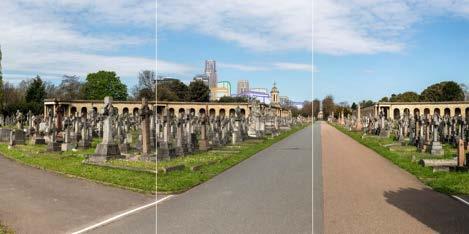 Once in position, the rendered images are edited using Adobe Photoshop®. Masks are created in Photoshop where the line of sight to the rendered image of the proposed scheme is interrupted by foreground buildings (as shown in Figure B.24).