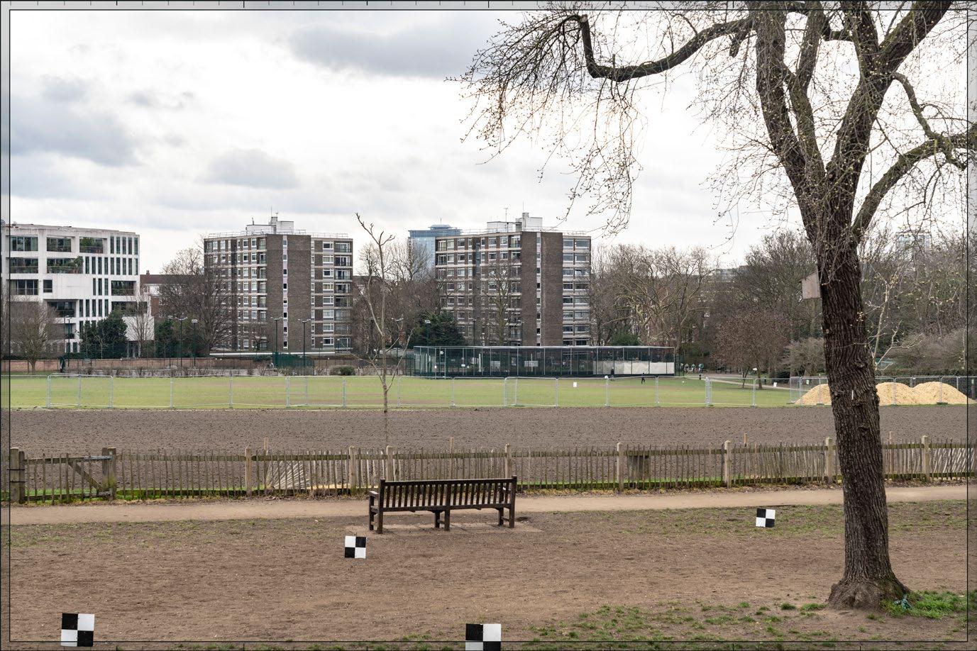 ∙ A 3D model of the proposed scheme (see Section B.5) The data is combined in a 3D software package and is then used to situate Cityscape’s virtual camera such that the 3D model/Digital Surface Model (DSM) aligns exactly over the background plate (as shown in Figure B.20) (i.e. a ‘virtual viewer’ within the 3D model would therefore be standing very close to the same viewpoint from which the original photograph was taken (Figure B.3). This is the camera matching process.