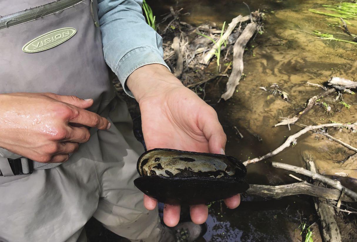 from the river, transferred them to a research centre and waited until the larvae or glochidia let go of the hosts. These tiny mussels are then being taken care of in special aquariums and dishes. It’s also one of Karvak’s tasks to deliver fresh water from the native river for the mussel babies every week, so that they get the original nutrients from their natural habitat. After a year in the lab, the strongest mussels were resettled into the river, to the mussel dormitories. So far, about 6000 mussels have been moved back to their birth river. Karvak examines the glochidia under the microscope regularly to discard the dead ones. They are barely visible to the eye but do put on a real show under the microscope!