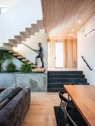 What is modernism? A break from the traditional. To Level 4 Studio that translates to a thoughtful balance between beauty and e ciency by means of purposeful design. At 5111 Rob Scott, Level 4 has created a triptych project; a multi level dwelling enhanced by the site's unique topography. Thoughtful spaces, multi levels and use of natural materials add character and contribute to the homes modern aesthetic.