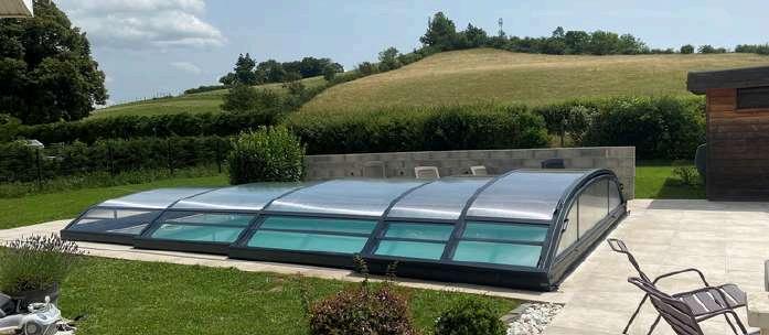Son atout ? Il permet la baignade partiellement couverte tout en optimisant le chauffage naturel de l’eau.