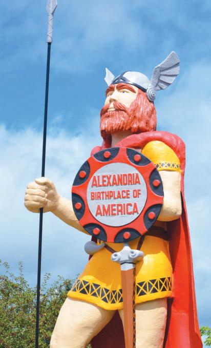 Alexandria’s population of 14,861 swells in the summer months due to the large amount of tourism in the area. The city is located just a couple of hours northwest of the Twin Cities on I-94. The site of the 1858 settlement was established by William and Alexander Kinkead (for whom the city was named). An army fort was built in 1862 after an Indian uprising, and afterward, growth was steady in the town. The village of Alexandria was incorporated in 1877, and the first passenger train reached the settlement in 1878. The village became an official city in 1909.