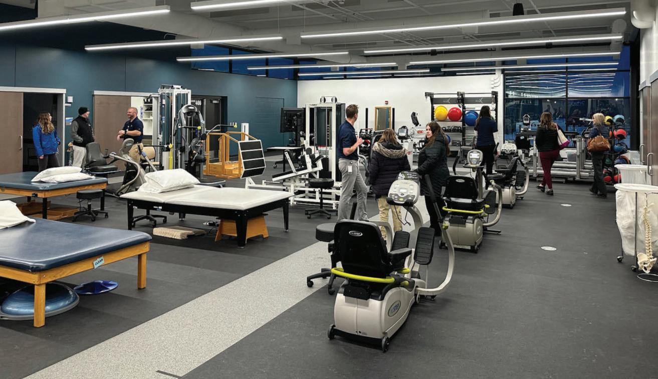 apediatricsplayground,adult gymwithwalkingtrack,a mobilityareathatincludesa harnesssopatientscanpracticewalkingwithoutthefear offalling,atherapypoolwith anadjustablebottomthat lowerspatientsintothewater, anunderwatertreadmillwith camera,andpatientrooms designedforserviceslike standardizedcognitivetesting, feedingtherapy,lymphedematherapy,pelvicfloor therapy,splinting,and concussionandvestibular therapy—justtonameseveral.
