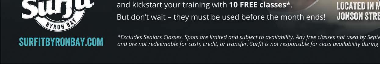 Mullumbimby Mental Health Carers’ Support Group for family members and friends who have a loved one with a mental health issue. Meeting on 4th Thursday of each month 9.30am at the Mullumbimby Neighbourhood Centre. Info: Susanne 0428 716 431. Rainbow Dragons Rainbow Dragons Abreast (RDA) welcomes breast cancer survivors for a paddle at Lake Ainsworth, Lennox Head (and sometimes at Ballina) on Sundays 7.30am for 8am start. Contact Marian 6688 4058, mazzerati2010@ gmail.com.