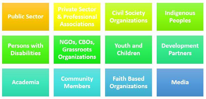 Akey activity undertaken by countries as part of their VNR is stakeholder consultation. These consultations are a way of getting key stakeholders that represent diverse subpopulations (see Figure 1) involved, to ensure that no one is left behind. More importantly, stakeholder consultation facilitates national ownership of the 2030 Agenda and serves as a rich source of qualitative data used to inform the VNR.
