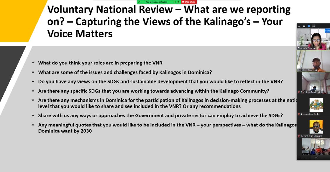 CARIBBEAN COUNTRIES CAPITALIZE ON SDG CONSULTATIONS TO BUILD PUBLIC COMMITMENT TO THE SDGSFigure 2: A Snapshot of the virtual stakeholder consultation with the Kalinagos in Domi-