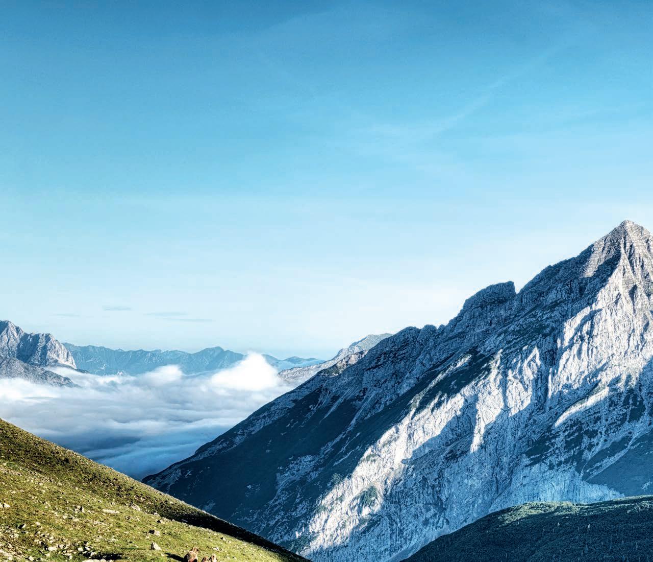 The stone pines release their wonderful scent in the summer warmth. The trees along the path cling with their roots to large boulders, grow in small, shady gorges or are covered in pink alpine roses. The strongest stone pines here are 250 years old, the oldest stone pine in the “Ampasser Kessel” is over 700 years old. And, if you let your gaze wander a little, it is bound to linger on the Karwendel mountains to the north, high above the Inn valley. Some 400 peaks are visible.