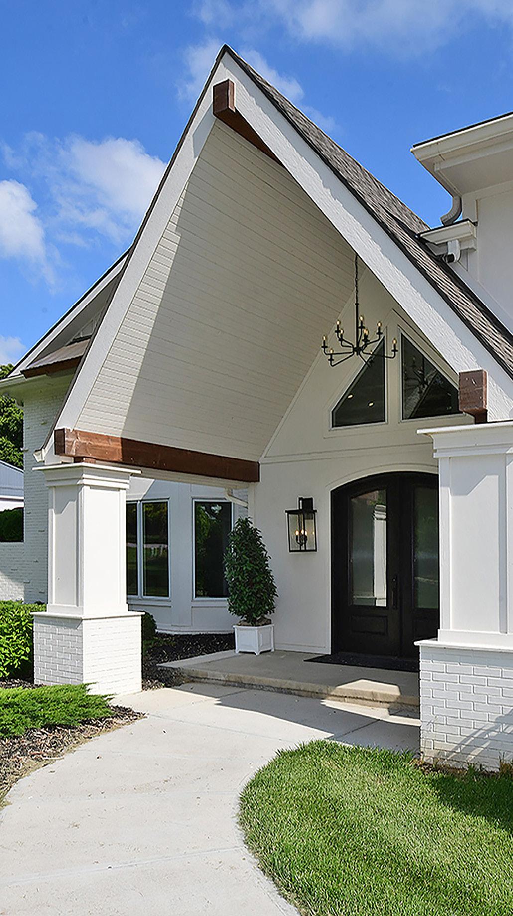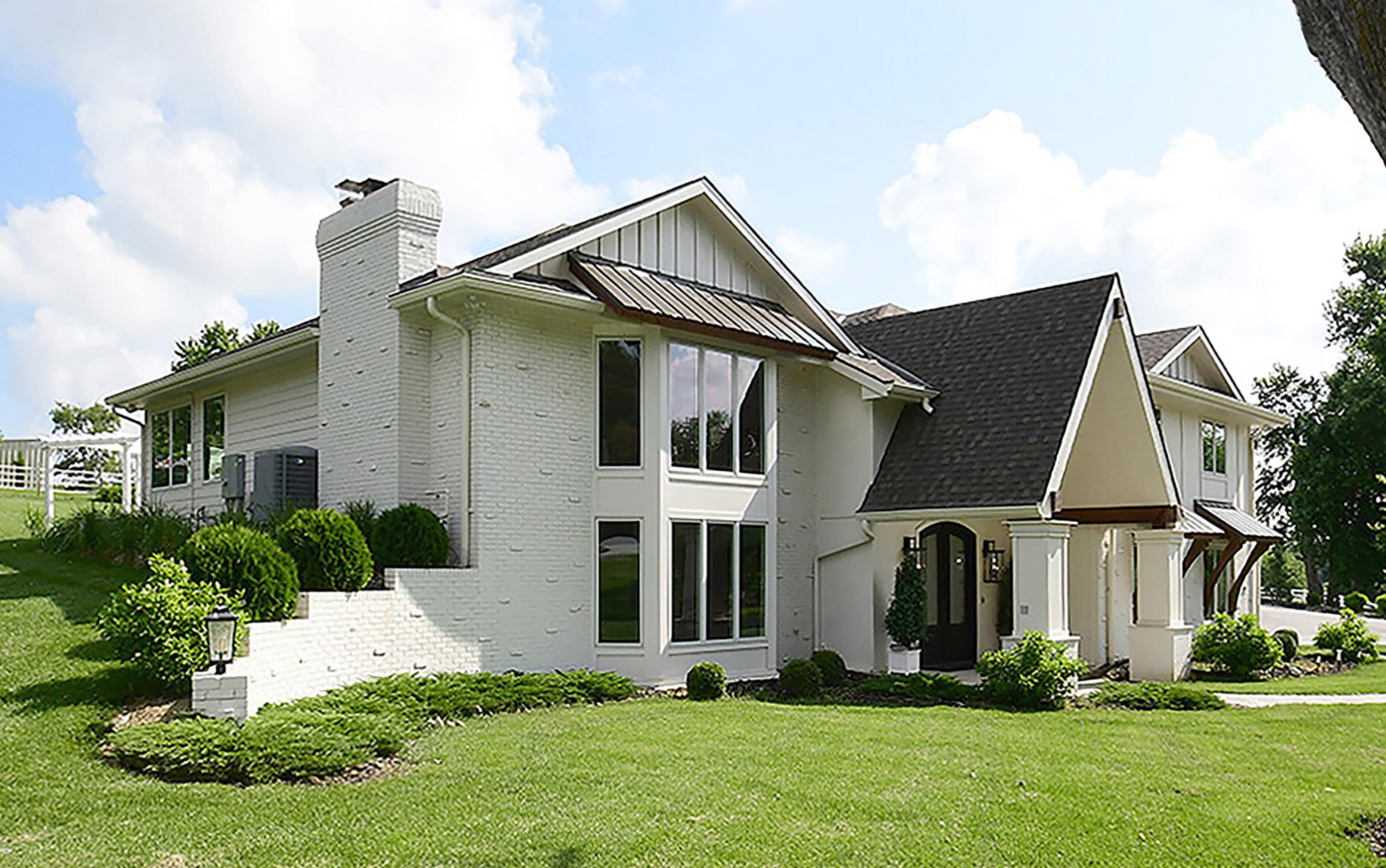 Home Realty. “And this is one of only five properties that backs up directly to the trail system.” From the outside, the home nods to classic Americana: pitched roofs, wood accents, and painted brick. Inside, it’s refreshingly modern. The great room spans more than 30 feet, anchored by oversized windows that frame uninterrupted views of the acreage. Beams cross overhead in a geometric rhythm, adding structure to the sky-high ceiling.