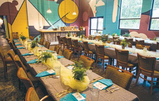 The Argot Room is an intimate and funky chic space opened by West Asheville’s beloved Jargon restaurant, which is known for its dynamic New American cuisine showcasing seasonal and local ingredients. The space can host 45 guests, making it ideal for small receptions, rehearsal dinners and birthday parties, and is instantly welcoming with cool decor and even small sitting areas. Event menus will closely replicate the restaurant’s offerings, which change with the seasons, and guests can work with the Argot Room’s dedicated event coordinator to plan the details. The rental rate is $500, and catered dinners range from $40 to $75 per person with beverages charged separately.