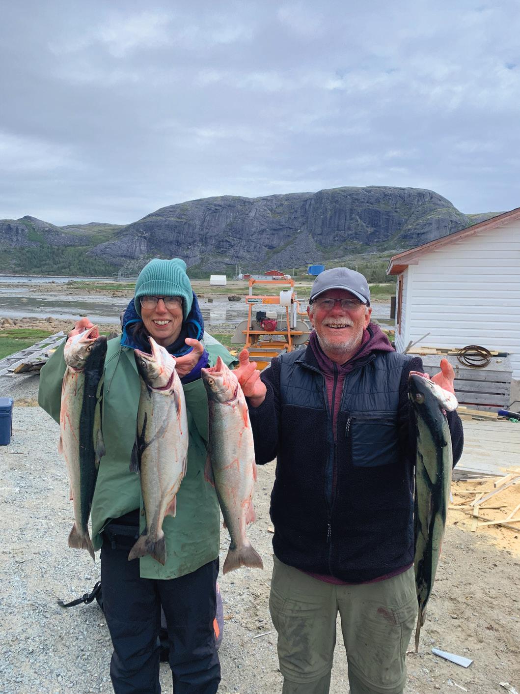Next page: Char filets drying; Connie and Bill Boland with their catch; char drying by the beach