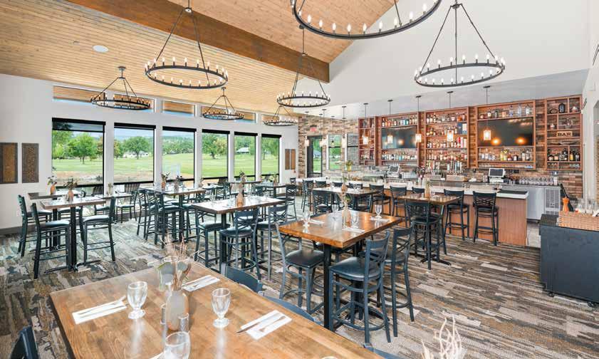 selections like pan-seared salmon with vegetable couscous pilaf and steak frites with sauteed baby spinach and rosemary demi glace, and beautifully plated desserts. The menu changes not only with the availability of seasonal ingredients, but also with the jam-packed special event calendar: Taco Tuesdays, weekly prix fixe dinners, and occasional winemaker dinners all bring tempting new menu items. Then there are trivia nights, Monday night football, jukebox bingo, DJ karaoke, twilight couples golfer dinners, and the list goes on.