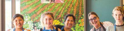 Founded in 1984 by Stephanie Raugust, FoodLab is just as groundbreaking and unique today as it was 33 years ago. Unlike other schools where working in the kitchen may be an elective option, if the opportunity is presented at all, every student cooks in the FoodLab every week as part of the school’s curriculum. Four-student teams rotate the roles of prep cook, baker, cook and manager, so everyone has the opportunity to perform a variety of kitchen tasks and leadership roles. “We’re educating the whole student, not just the academic part,” explains food services director Emelia Miguel.
