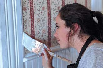 Felder—pregnant with Stanley Norfleet Cox, who was born Sept. 18—on the hotel veranda; apprentice Aileen Shea helps paint the new dining room; locals set out bunches of lavender; Cox installs tin ceilings in what will likely become a destination for intrepid eaters and island regulars alike.