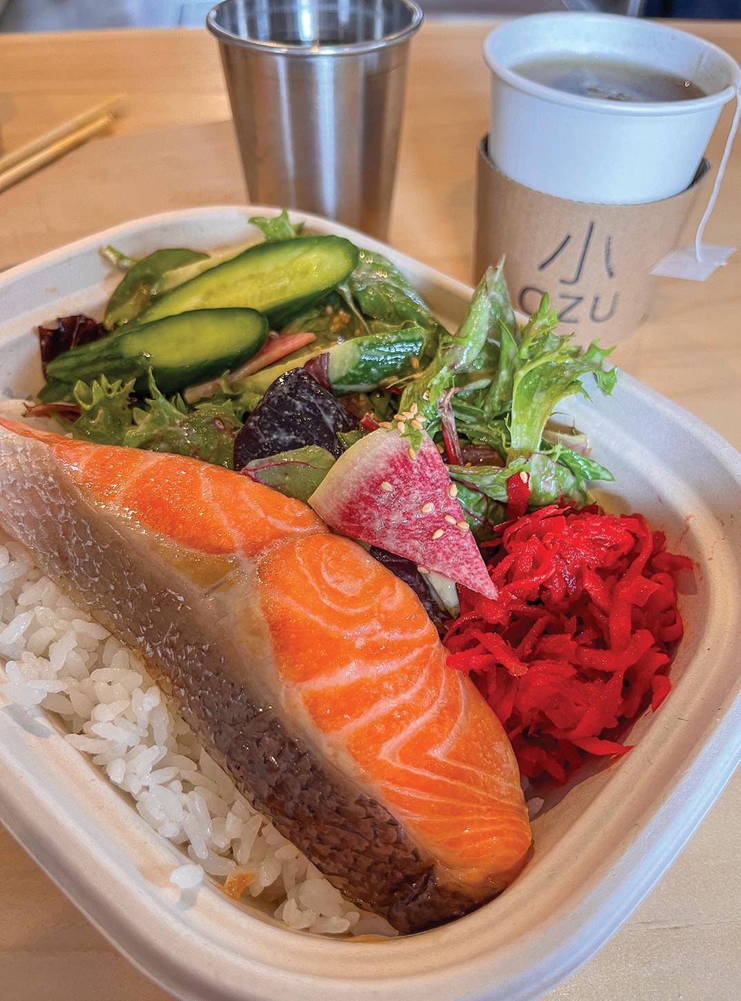 Ozawa says the tiny space is working out for him. “You get a nice amount of foot traffic,” he says of the location, noting that people come to Lena Street to experience something new and fresh—just the kind of customer he’s looking for. The small counter and six or so tables, if you count the outdoor area, has gained a devoted following, and it’s no wonder given the careful crafting of the bento boxes, including a vegan option, and other flavorful and well-calibrated dishes like temaki and onigiri that come in the paper containers he passes across the counter.