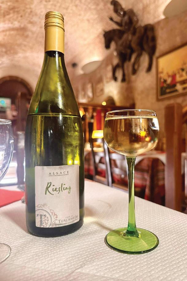 This ancient cellar turned restaurant sits across the square from the magnificent Notre-Dame cathedral. If you have not experienced Alsatian rieslings, I promise you the love affair of your wine life when you do. Pair it with choucroute, a platter of meats served over sauerkraut. This Alsatian cabbage dish is not the traditional sour stuff you may be used to, but rather a delightful, delicate addition to