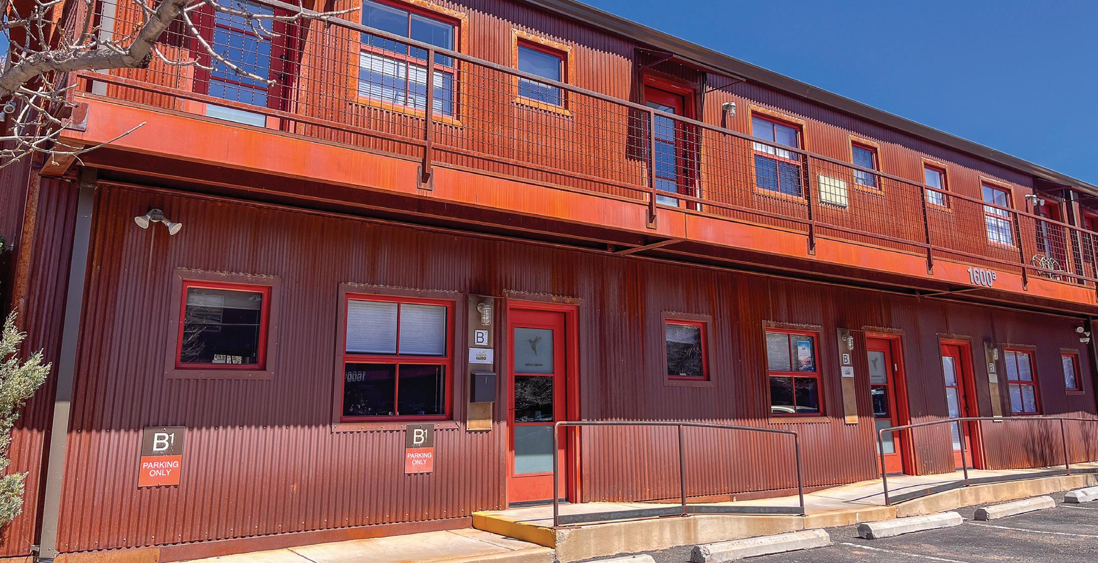 The vision of Rick Brenner, who built the complex in the mid2000s with Santa Fe’s Ellis/Browning architects, the barn-shaped, steel-fronted structures at 1600 Lena Street, a.k.a. the Lena Street Lofts, exemplify organic evolution over time. Rather than hosting any kind of engineered “alternative” housing or office complex, the far end of Lena Street has somehow bypassed trends in favor of something both more traditional and more forward looking. The spaces are 70 percent solar powered, and cisterns capture rainwater to irrigate the landscaping. It all feels contemporary, though the systems have been in service for nearly twenty years. The Coffee Trust and The Trust for Public Land, local sustainability-focused entities that have been in operation for decades, were early tenants.