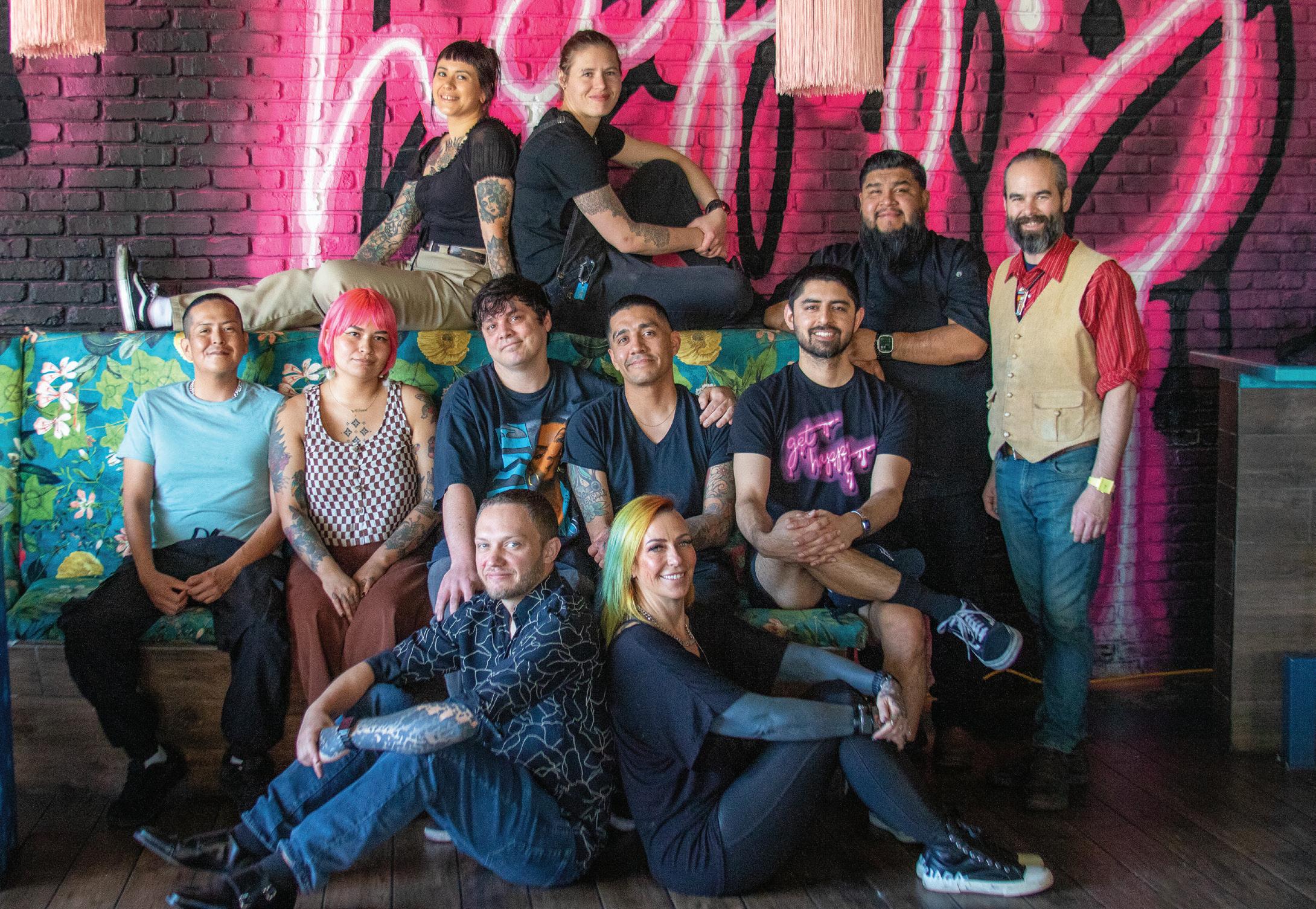 Around that time, vegan pop-up bakery Plantita opened in a space on Lena just outside the Lofts, serving vegan pizzas and offering local delivery from their menu of baked goods. (Plantita closed its doors in early 2024, citing high food costs and a rent increase.) Root 66 Cafe also set up shop there, serving organic vegan fare like plant-based egg salad sandwiches and curried tofu. Meanwhile, Iconik kept growing, becoming a gathering space for tenants old and new while bringing locals and tourists to the neighborhood. The business changed hands when customer and fan Sean Ham approached Spitzer about buying it, and Brenner and Watson, who wanted the business to stay at Lena, helped fund the purchase.
