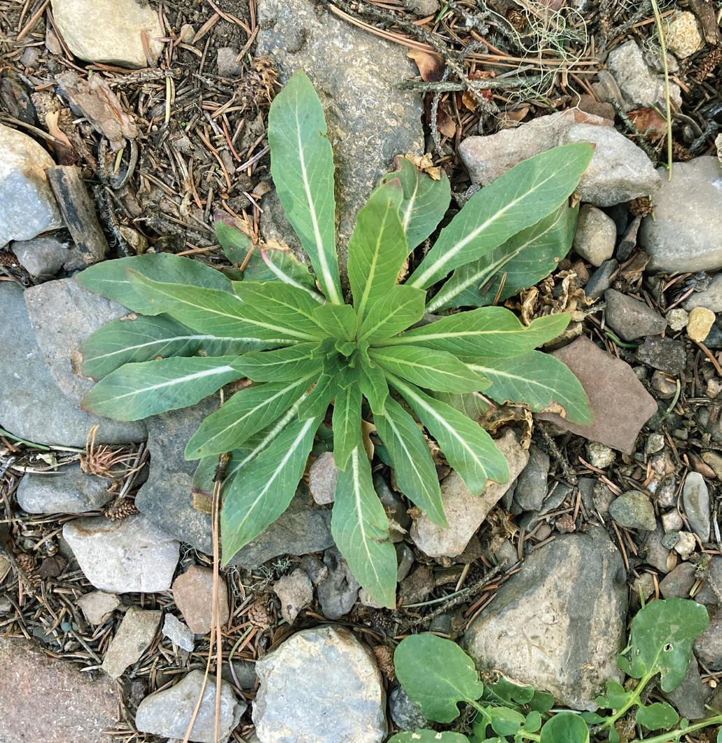 The first-year growth of evening primrose forms a basal rosette of lanceolate leaves with wavy or toothed leaf margins. Look for the dried stalks of last year’s seeds to find a patch of young plants. The roots have a hint of black pepper flavor. Some people report throat irritation after eating the raw root, so let’s not do that! After peeling them, you can cook sliced roots in soups and stews, or boil and mash them for a side dish or fritters.