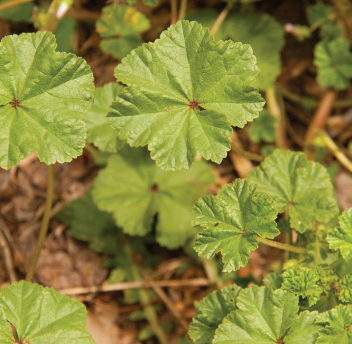 • Flowers have five petals and are white, pale pink, or pale purple; flowers are followed by fruits that resemble wheels of cheese.