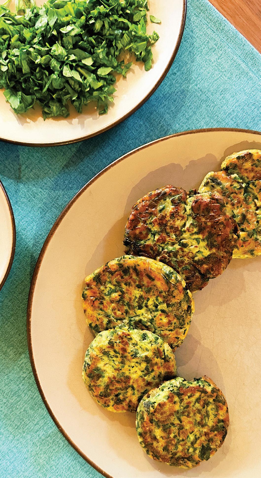 When the first side has browned (3–5 minutes), flip the fritters and brown the second side (only 2–3 minutes). These are best eaten hot, so either serve immediately, or reheat them on a cookie sheet in the oven before serving. Then sit back and enjoy the first foraged feast of spring.