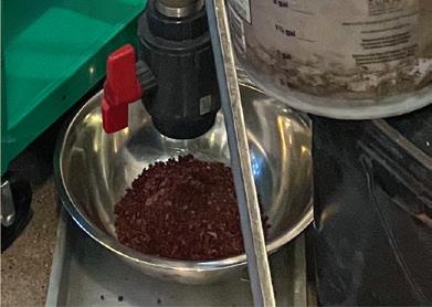 Ingredients are added to the chocolate liquor from the concher before pouring into molds.